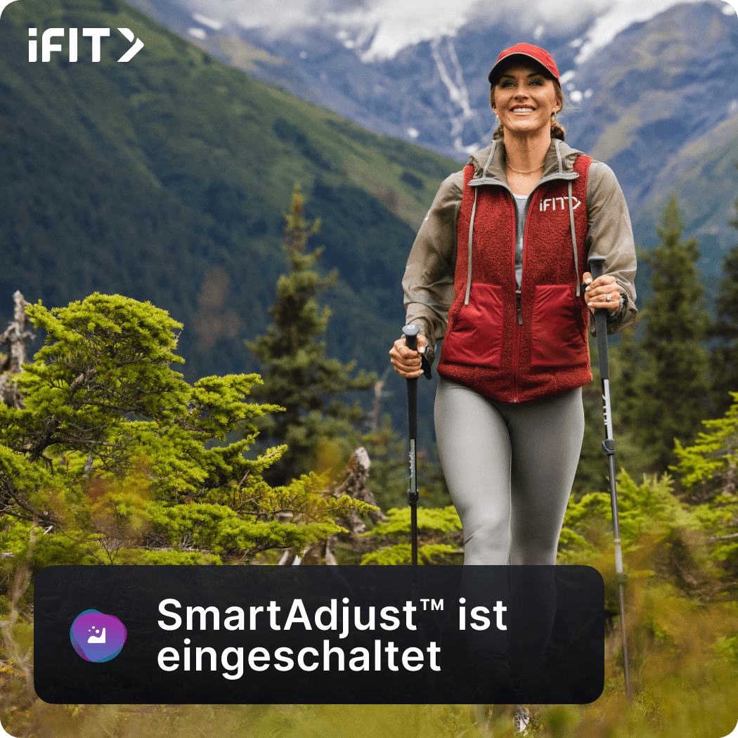 SmartAdjust™ passt Steigung und Widerstand intelligent an Ihr Fitnessniveau an, basierend auf den Anpassungen, die Sie in Ihren Trainingseinheiten vornehmen.¹