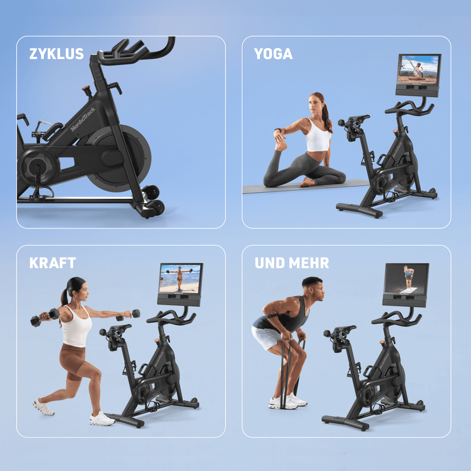 Ein Studio-Bike, das ein erstklassiges Radfahrerlebnis bietet. Die große Bandbreite an Widerstand ermöglicht Erholungsfahrten oder muskelaufbauende Cardio-Workouts, und der große Bildschirm lässt Sie in von Trainern geführte iFIT-Workouts eintauchen.
