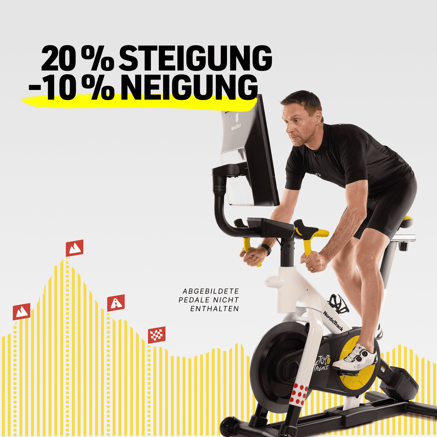 20% Steigung bis -10% Neigung für mehr Intensität und Abwechslung