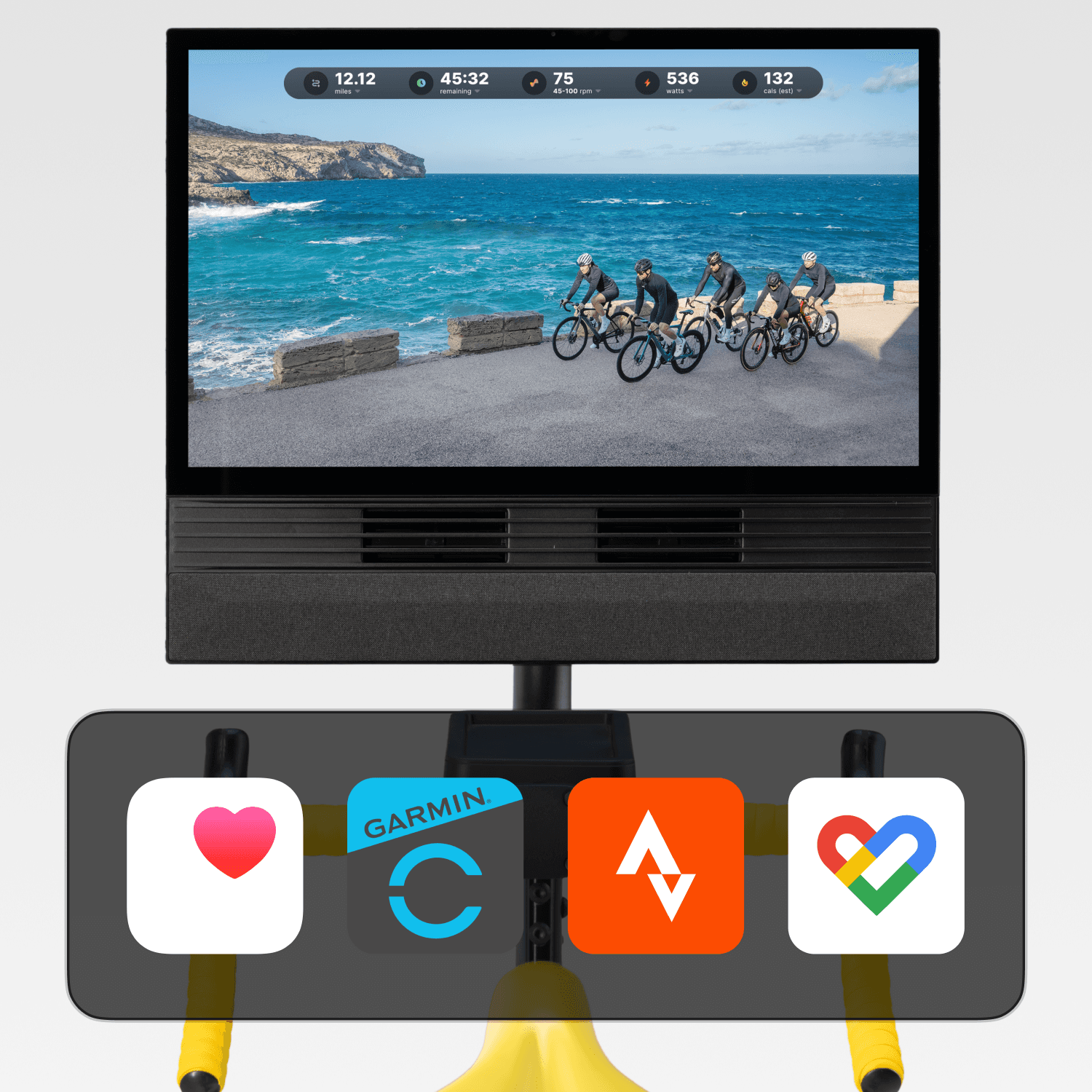 Schwenkbarer 24'' Touchscreen für von Trainern geführte Workouts und Streaming mit iFITEchtes fahrgefühl
