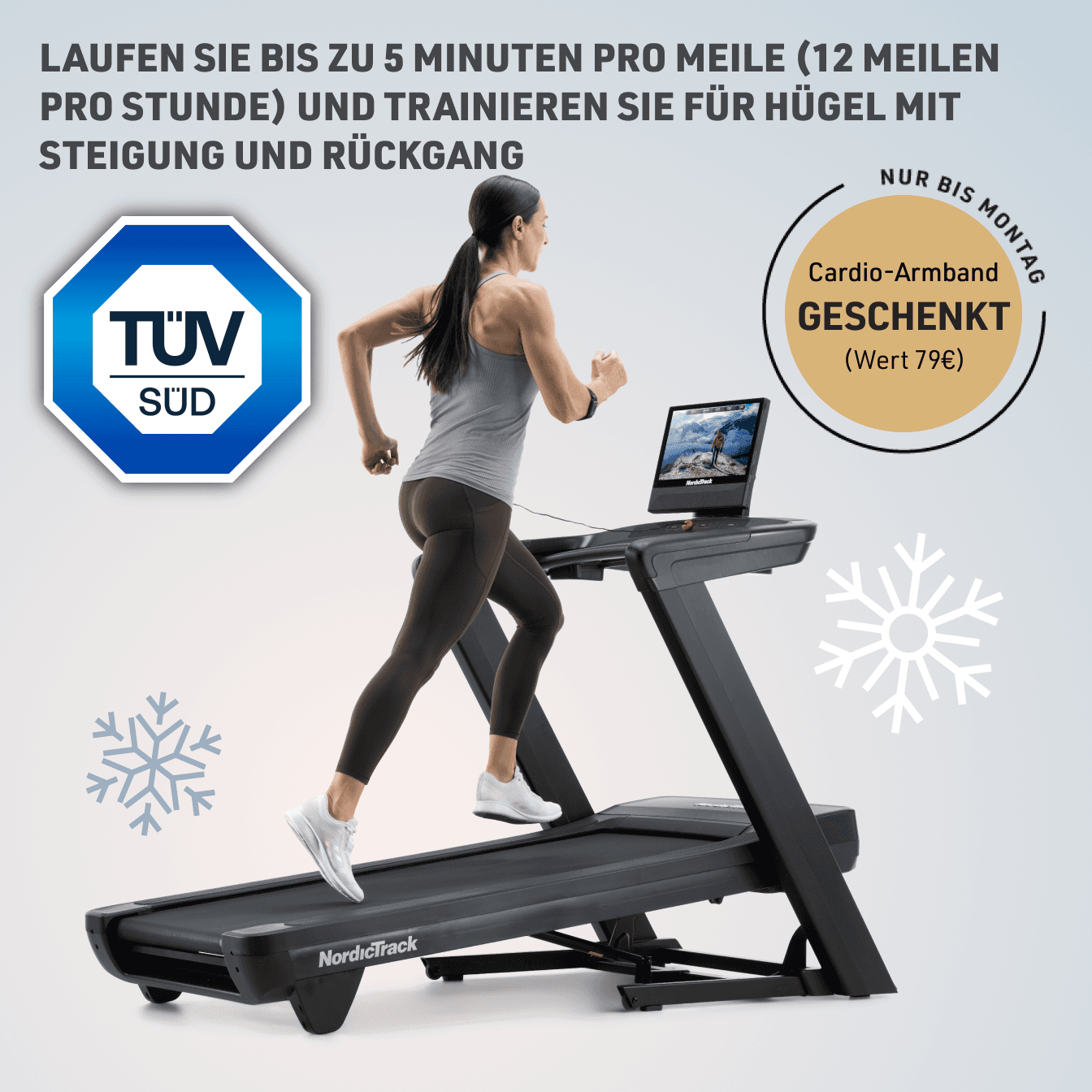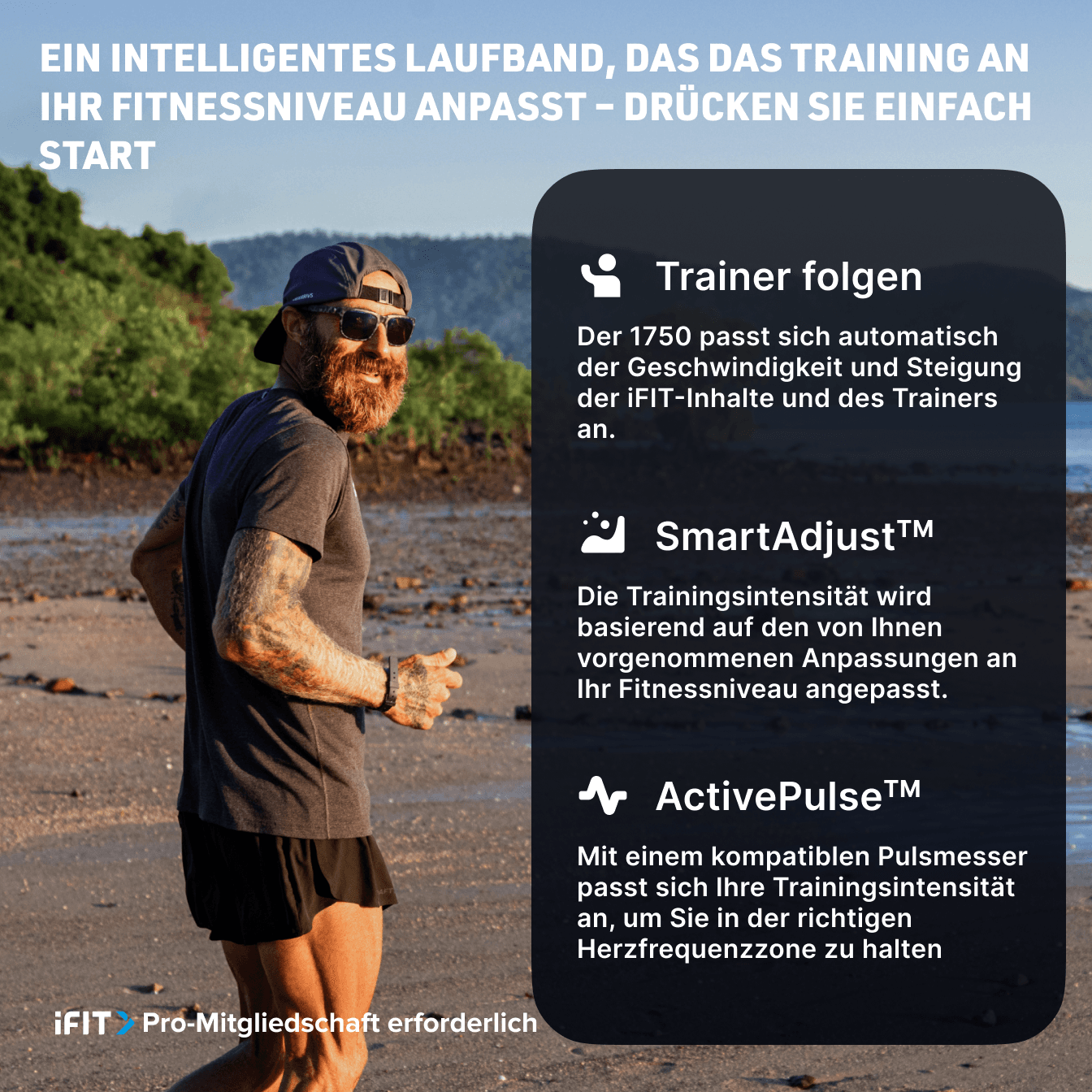 - iFIT-Abonnement und kompatibler Herzfrequenzmonitor erforderlich (separat erhältlich). Nur mit Laufbändern erhältlich.