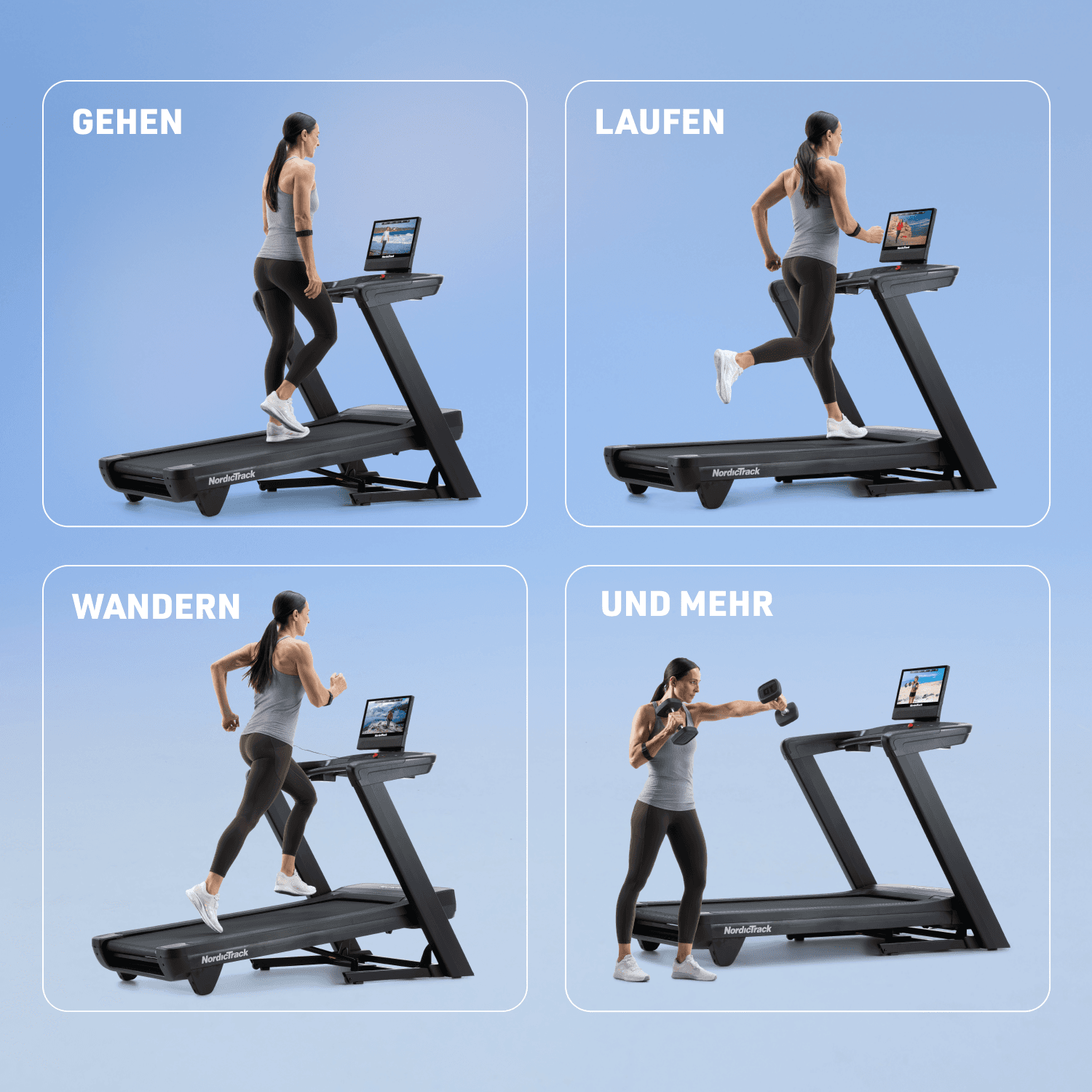 Perfekt für Anfänger bis Fortgeschrittene, die ihre Ausdauer verbessern möchten. Folgen Sie iFIT Trainern in On- oder Off-Streadmill-Workouts auf einem 16" schwenkbaren Touchscreen.