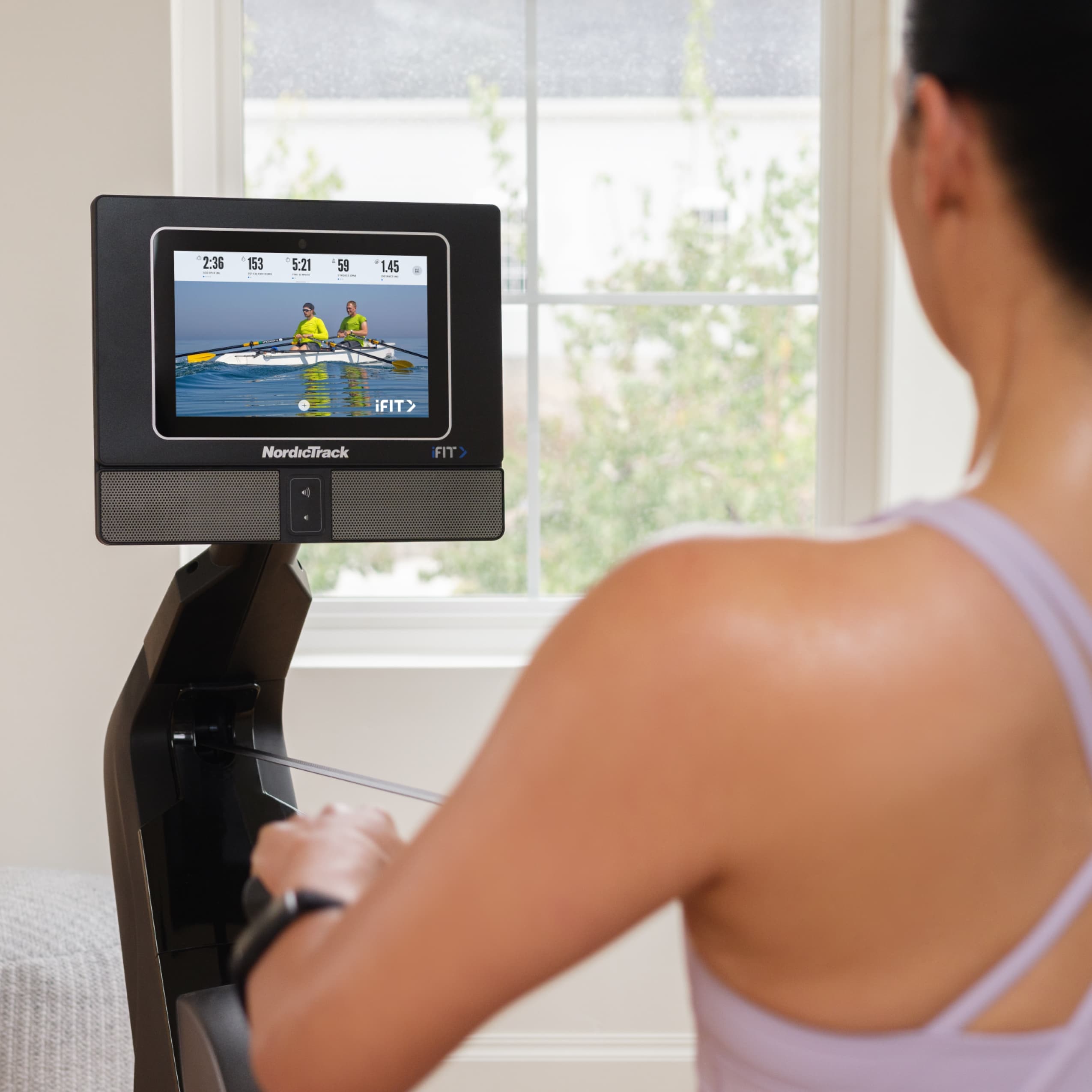 Genießen Sie trainingsgeführte iFIT-Workouts auf oder neben dem Rudergerät. Unser Touchscreen lässt sich um 360° drehen und neigen, sodass Sie immer die perfekte Sicht haben, egal wo Sie sich bewegen.
