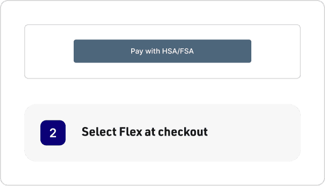 To pay with HSA/FSA choose Flex at checkout, complete a brief telehealth consult for eligibility, and then pay with your HSA/FSA debit card. If you don’t have your HSA/FSA card handy, complete the checkout with a regular credit or debit card and Flex will email you an itemized receipt for reimbursement.