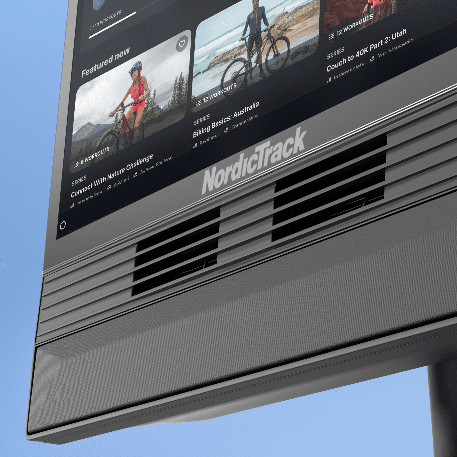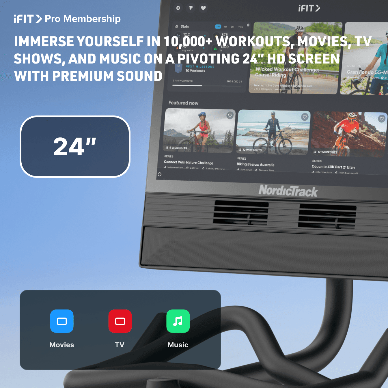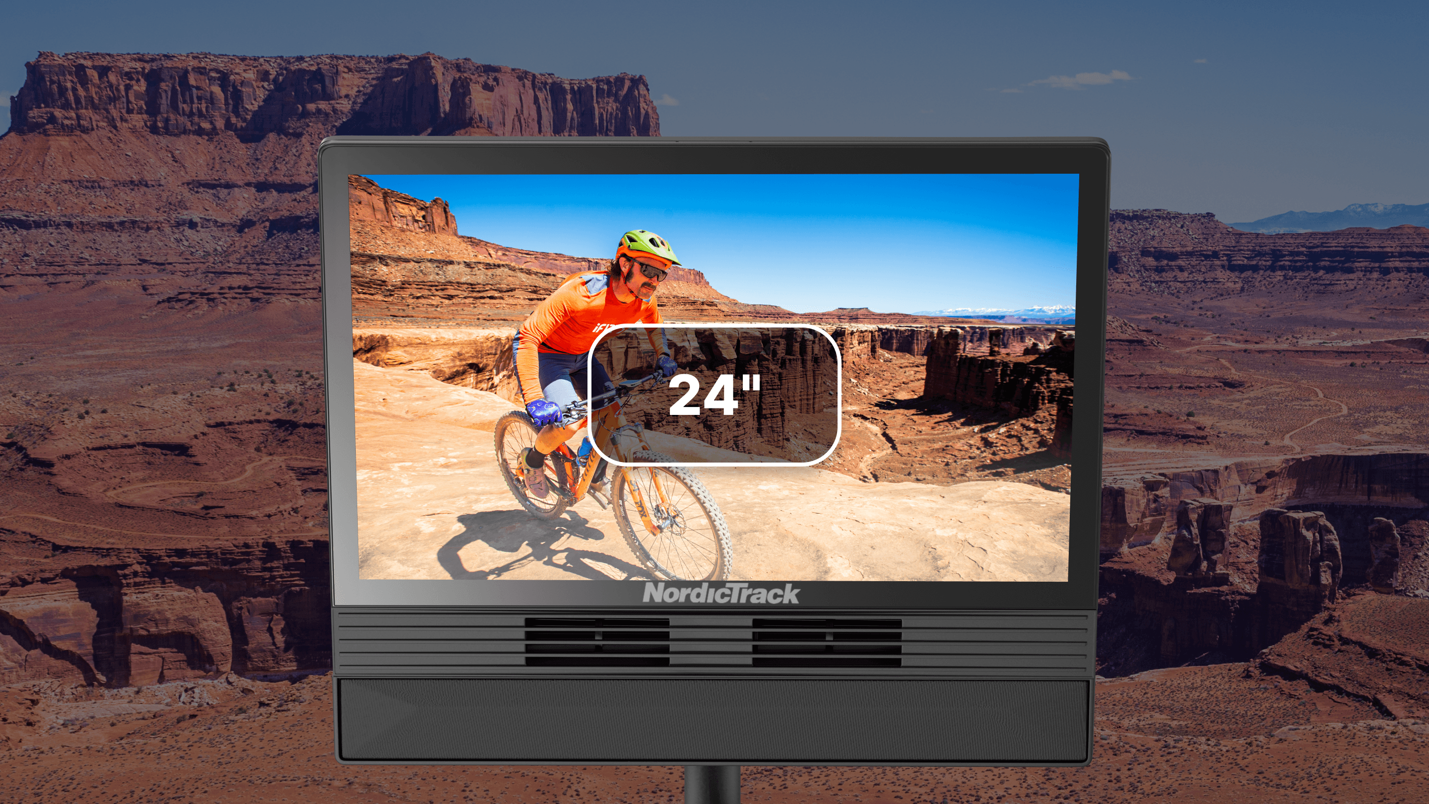 Pivoting 24” touchscreen for trainer-led workouts & streaming with iFIT2-sided pedals