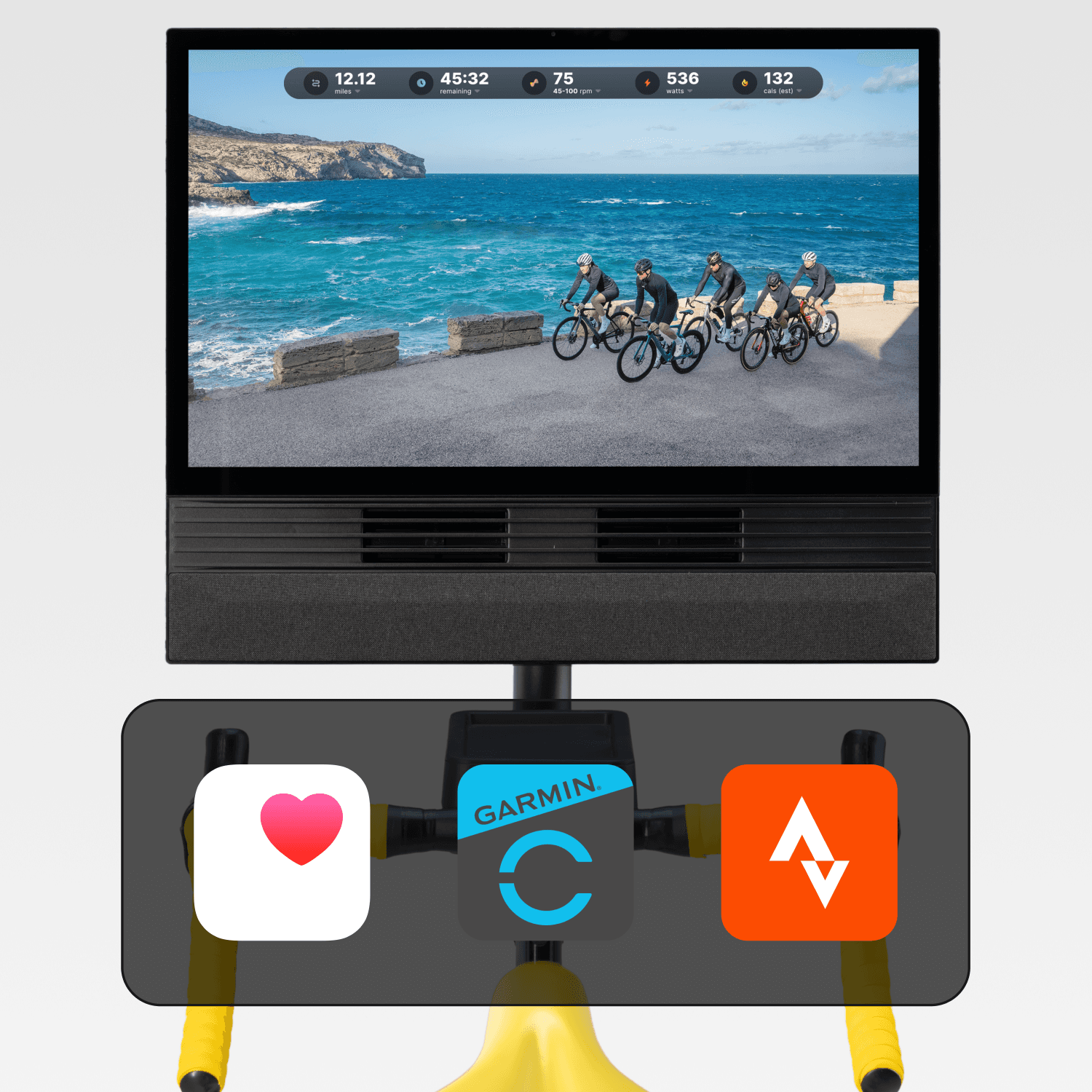 One machine for any workout. Hill climbs, descents, sprints, then turn the screen for strength, yoga, and more.¹