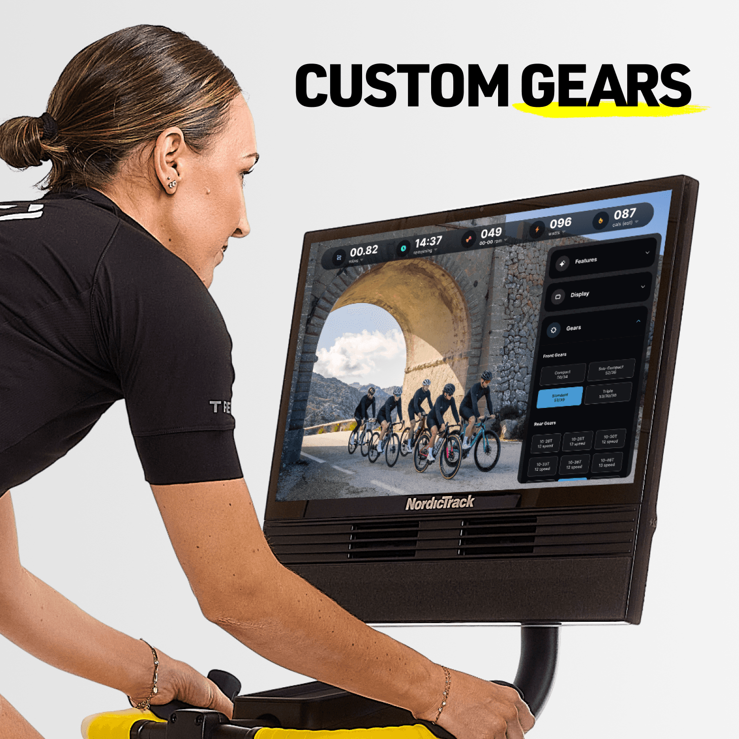 Custom gearing allows you to digitally match the gear ratios of your outdoor bike.
