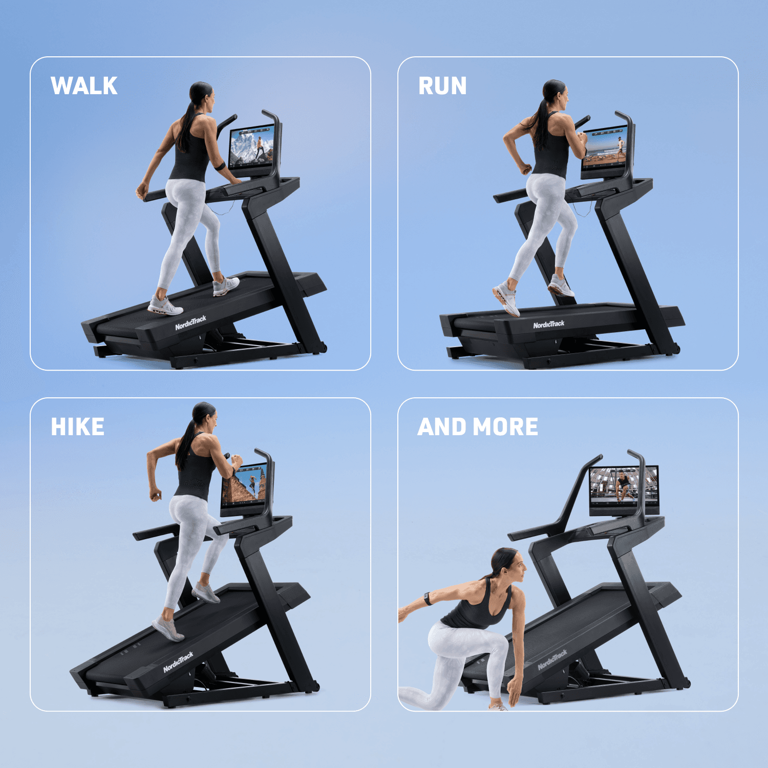 ONE MACHINE FOR ANY WORKOUT. WALK, RUN, AND HIKE, THEN TURN THE SCREEN FOR STRENGTH, YOGA, AND MORE.