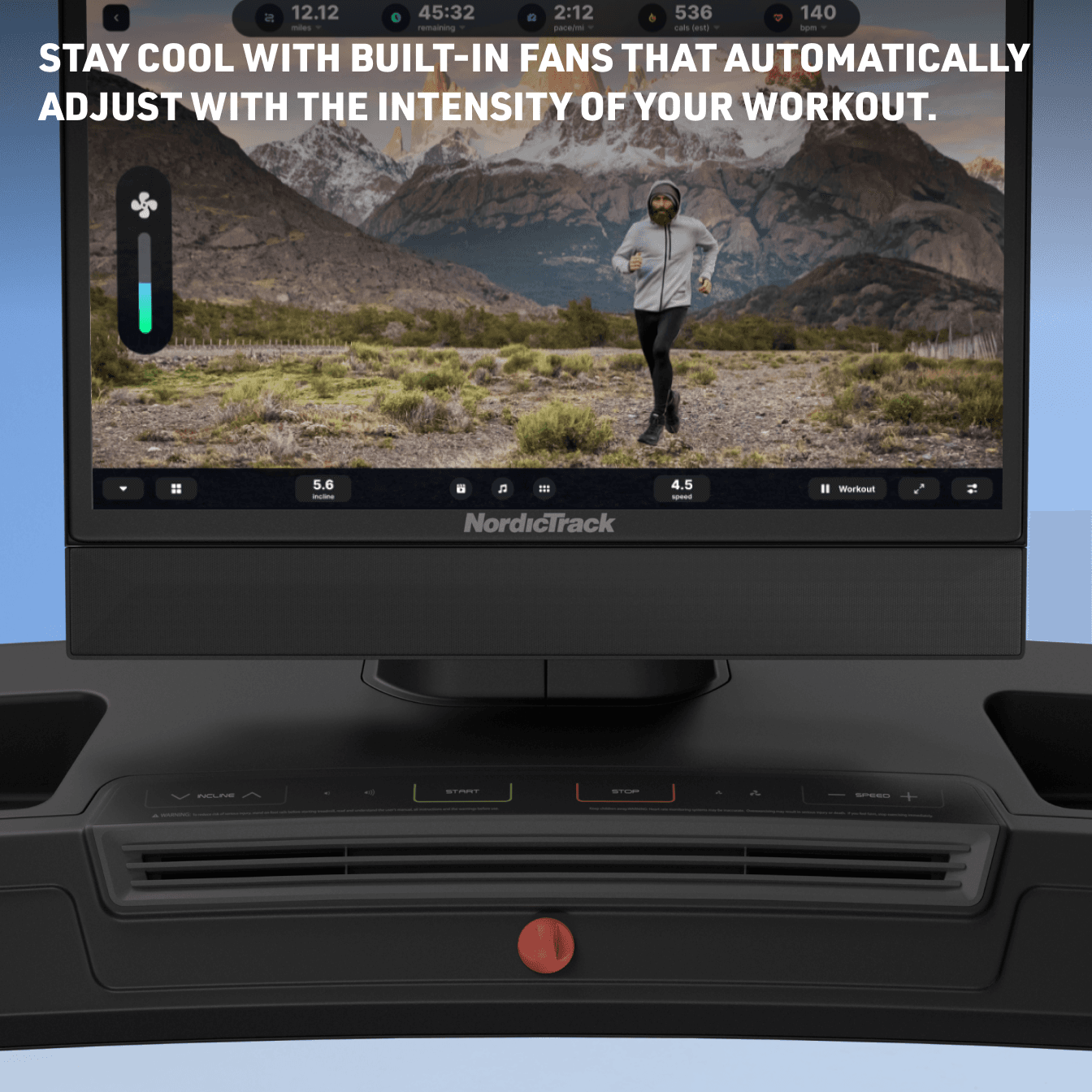 THE AUTOBREEZE™ FAN AUTOMATICALLY ADJUSTS WITH THE INTENSITY OF YOUR WORKOUT TO KEEP YOU COOL.