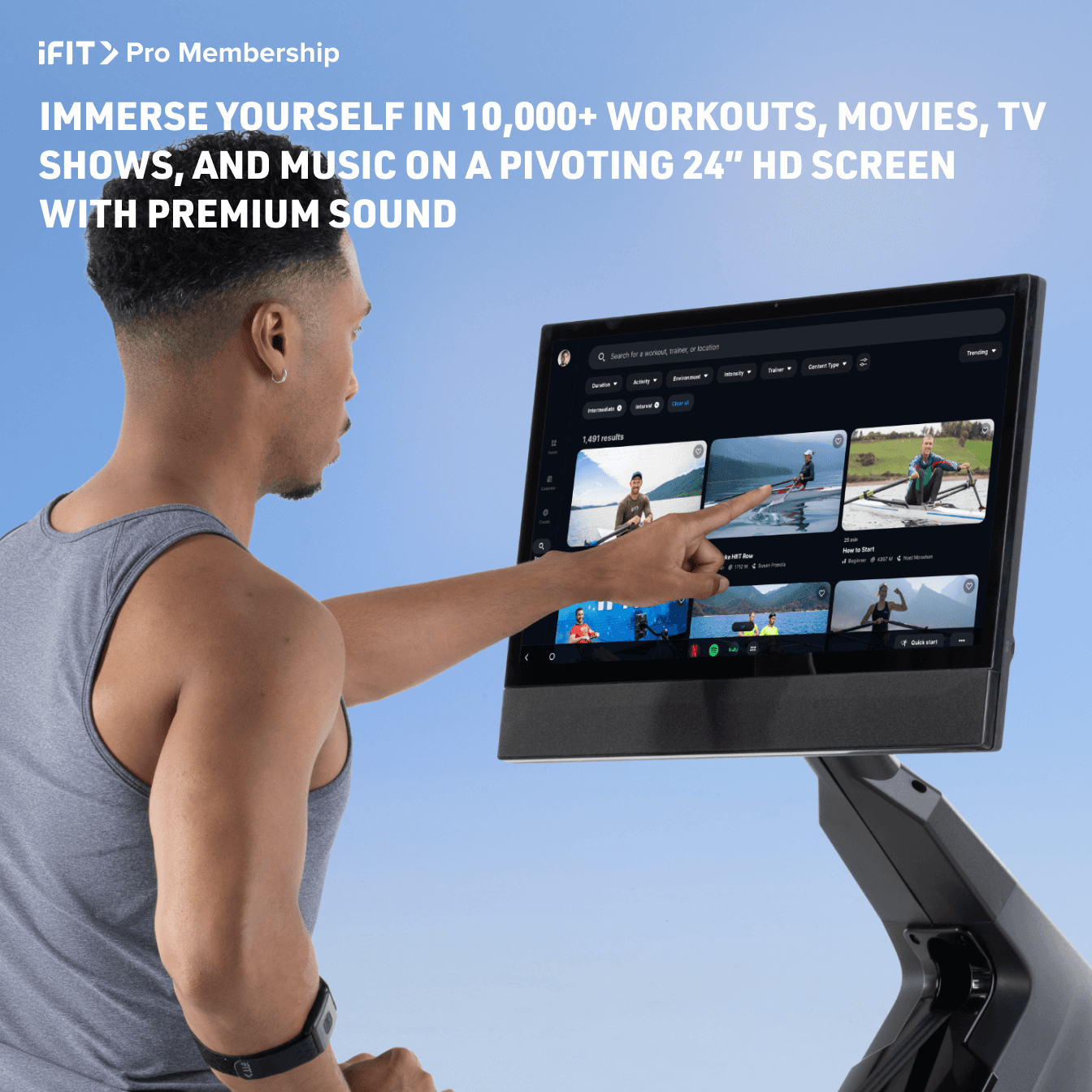 A smooth and strong full-body workout with all the resistance you need for the intensity you want. Paired with iFIT, immerse yourself in workouts around the world on a 24” touchscreen.