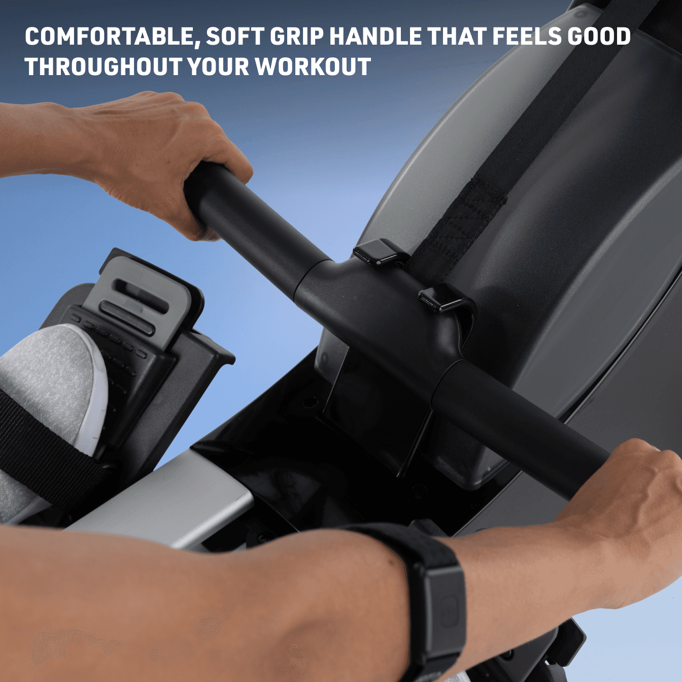 STAY COMFORTABLE WITH AN ERGONOMIC SEAT, SOFT GRIP HANDLES, AND WIDE FOOT PEDALS THAT PIVOT WITH YOUR ROWING MOTION.