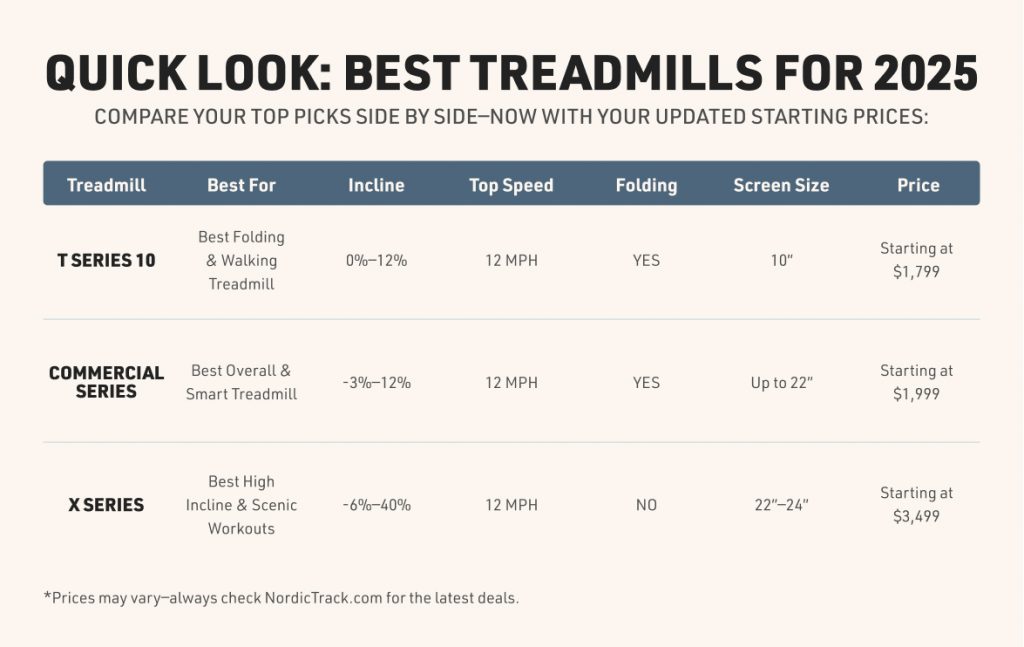 This updated treadmill buying guide for 2025 simplifies the process, giving you expert insight into the key features that matter, the questions to ask before you buy, and the NordicTrack models best suited for your lifestyle. With the right information, you’ll feel confident in selecting a treadmill that supports lasting results.