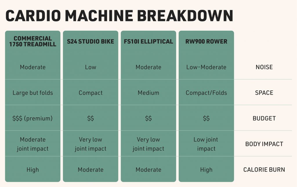 Finding the right fit out of these top four cardio machines isn’t just about how hard it works. It’s also about how well it fits into your life. Here are a few final factors that can make all the difference: