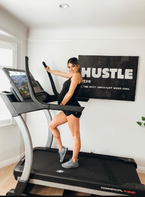 Facebook®: "Happy ‘push present’ to meeee! I'll be my biggest in the thick of summer, so I know this baby (the treadmill, of course*) has and will be my new best friend for a quick air conditioned training sesh.