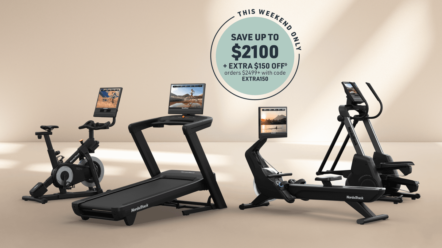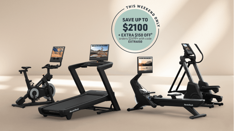 ◊ Extra $150 off orders $2,499+ (“Offer”) available only from April 10, 2026 until April 13, 2026 @ 11:59PM MST for U.S. residents, 18+. Discount only applies to the subtotal of order at Home and Exercise Equipment by NordicTrack - Treadmills, Ellipticals, and More and will not apply to taxes or shipping or other charges. Excludes Ultra series. Offer is not transferable, substitutable, not redeemable for cash or account credit, has no cash value, and will not be applied retroactively. Void where prohibited. Must enter EXTRA150 promo code at checkout to obtain discount. Limit one per customer. NordicTrack reserves the right to end, revise, modify, or extend this Offer or its terms at any time without notice. NordicTrack is not responsible for any Offer errors, including tech errors.