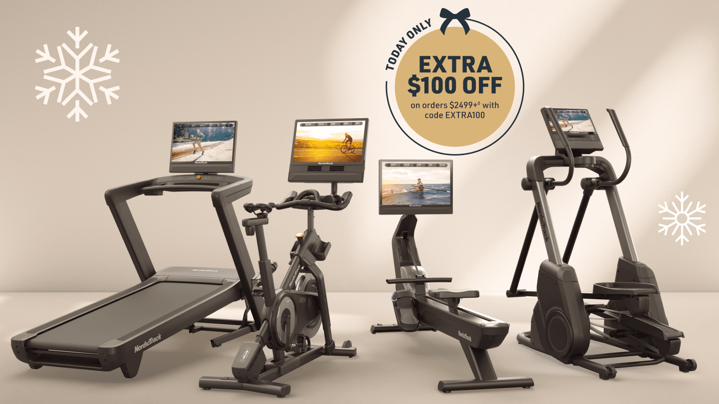 ◊Extra $100 off orders $2,499+ offer (“Offer”) available only on December 16, 2025 @ 11:59PM MST for U.S. residents, 18+. Discount only applies to the subtotal of order at www.nordictrack.com and will not apply to taxes or shipping or other charges. Offer is not transferable, substitutable, not redeemable for cash or account credit, has no cash value, and will not be applied retroactively. Void where prohibited. Must enter EXTRA100 promo code at checkout to obtain discount. Limit one per customer. Offer excludes Ultra products. NordicTrack reserves the right to end, revise, modify, or extend this Offer or its terms at any time without notice. NordicTrack is not responsible for any Offer errors, including tech errors.