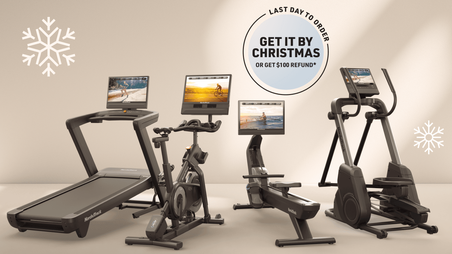 *“Get It Before Christmas” offer (“Offer”) valid on qualifying, in-stock purchases with in-home assembly through 12/13/2025 at 11:59 p.m. MST and standard delivery made through 12/15/2025 at 11:59 p.m. MST for residents in the Continental U.S., 18+. If the qualifying equipment purchased through the Offer is not received at the shipping address provided at the time of purchase in the Continental U.S. before December 24, 2025 at 11:59 p.m. MST (“Delivery Deadline”), the purchaser may receive a $100 refund on the purchase price for the qualifying equipment, subject to the following exceptions: the Offer will be void if (a) an attempted delivery or an offer by the carrier of a delivery appointment on or before the Delivery Deadline is made; or (b) unforeseen circumstances outside of NordicTrack’s reasonable control, including strikes, natural disasters, or severe weather, prevent NordicTrack from meeting the Delivery Deadline. The Offer is limited to non-PO addresses in the Continental U.S. To redeem the $100 refund, the purchaser must contact NordicTrack’s Customer Care team at 1-800-862-3348 by no later than 5 PM MST on December 31, 2025. After this time, the Offer will expire and purchasers will no longer be able to receive the $100 refund. Offer is not transferable or substitutable, not redeemable for cash or account credit, may not be combined with other offers, has no cash value, and will not be applied retroactively. Void where prohibited by law. iFIT reserves the right to end, revise, modify, or extend the Offer or its terms at any time without notice. NordicTrack shall not be responsible for any Offer errors, including tech errors. Please include your order number as part of the refund request and allow 8 to 12 weeks for processing.