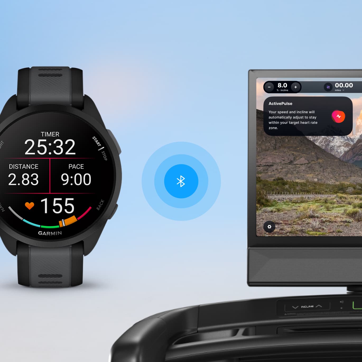 ActivePulse™ takes the guesswork out of adjusting your intensity, with trainers setting your target heart rate and speeding you up or slowing you down to keep you in the right zone.² Sync your Garmin to your treadmill to dial in your training.