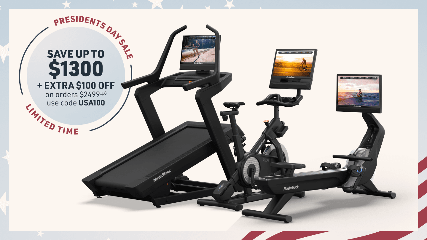 ◊ Extra $100 off orders $2,499+ (“Offer”) available only from February 17, 2026 until February 23, 2026 @ 11:59PM MST for U.S. residents, 18+. Discount only applies to the subtotal of order at Home and Exercise Equipment by NordicTrack - Treadmills, Ellipticals, and More and will not apply to taxes or shipping or other charges. Excludes Ultra Series Products. Offer is not transferable, substitutable, not redeemable for cash or account credit, has no cash value, and will not be applied retroactively. Void where prohibited. Must enter USA100 promo code at checkout to obtain discount. Limit one per customer. NordicTrack reserves the right to end, revise, modify, or extend this Offer or its terms at any time without notice. NordicTrack is not responsible for any Offer errors, including tech errors.