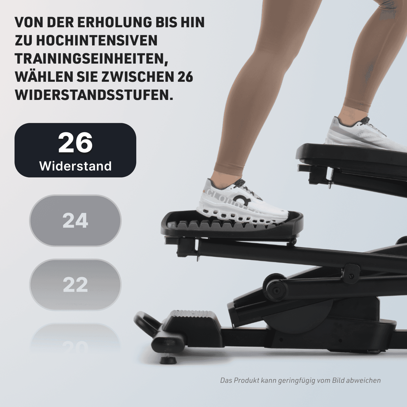 Bringen Sie mehr Abwechslung in Ihr Training mit gelenkschonenden Workouts. Maximieren Sie Ihre Leistung mit Widerstandsstufen für Regeneration und hochintensives Training.