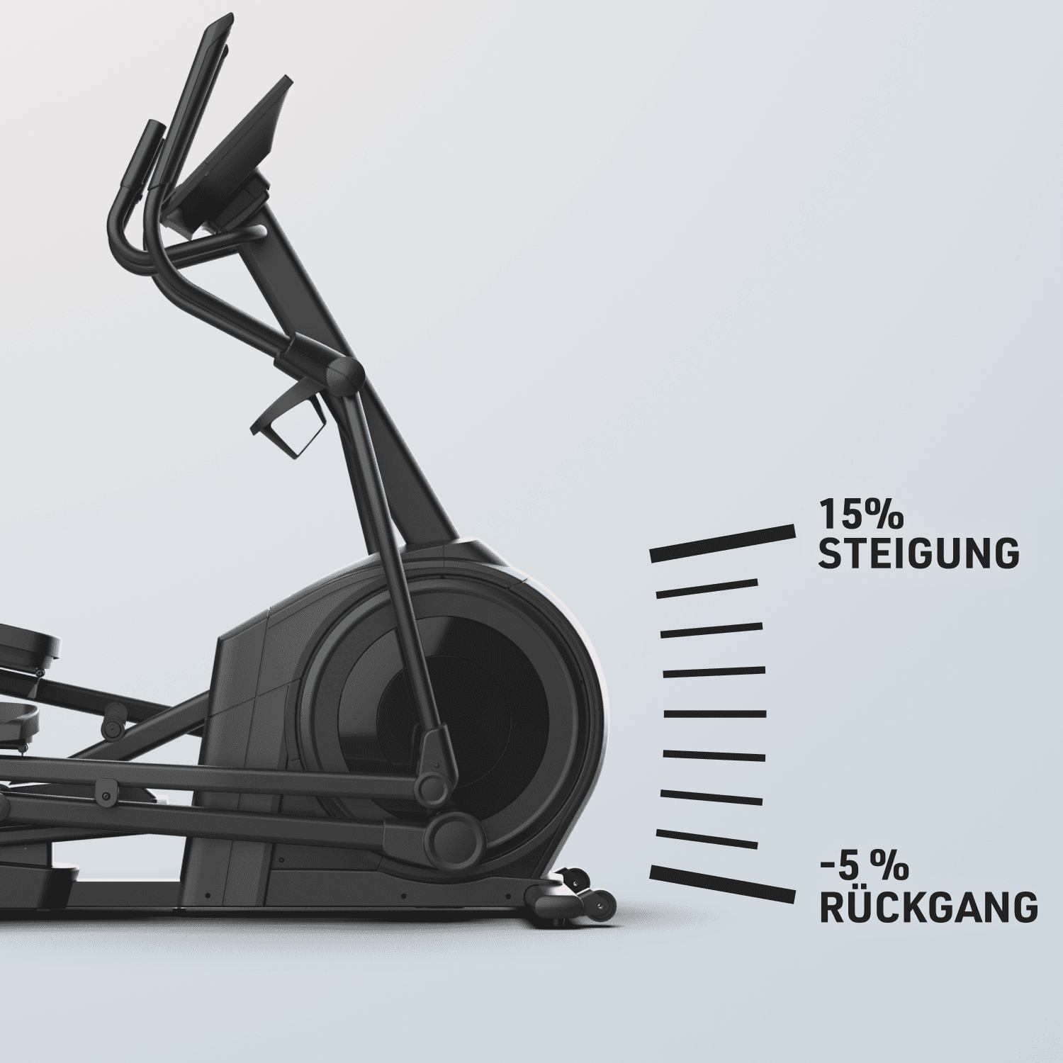 15% Steigung bis -5% Neigung für mehr Intensität und Abwechslung