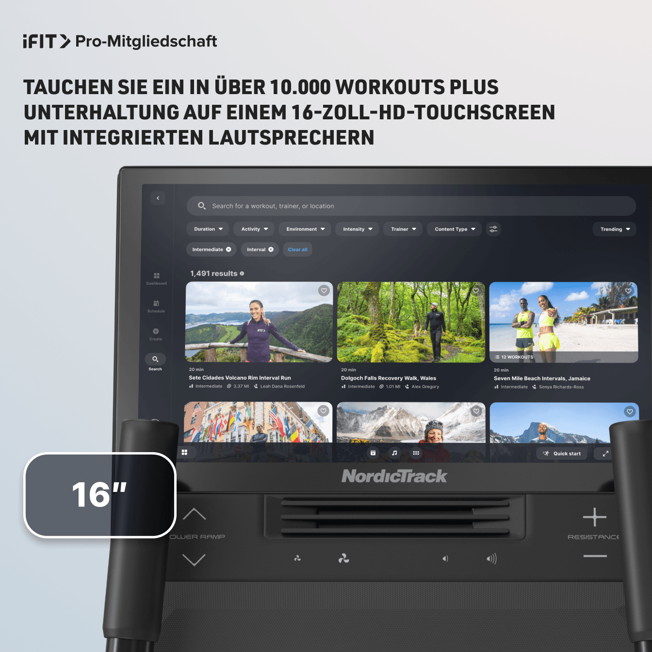16'' Touchscreen für von Trainern geführte Workouts und Streaming mit iFITGroßer Widerstandsbereich