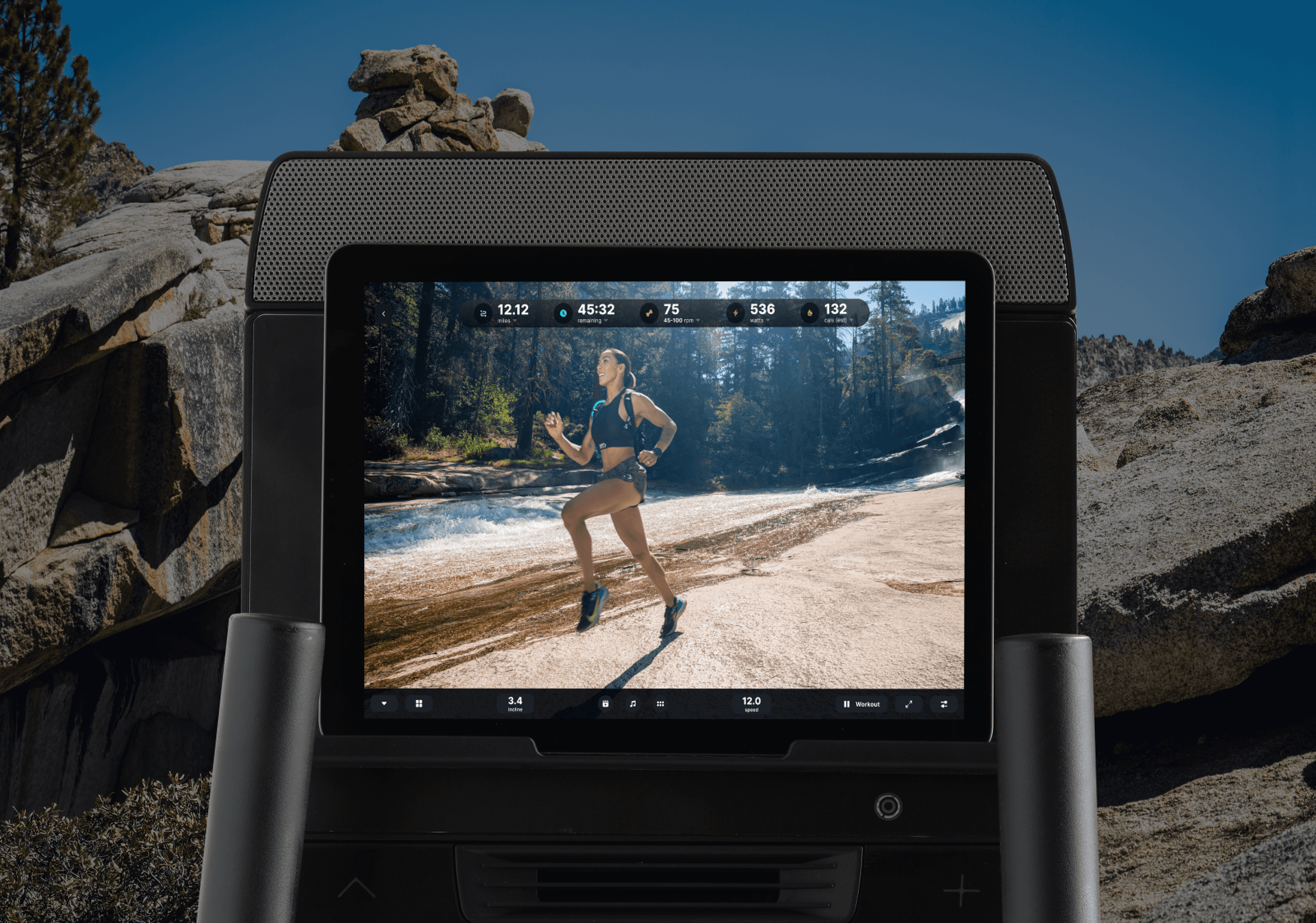 Mit einer Steigung von -5 % bis 15 % entspricht dieses Laufband dem Terrain und der Intensität Ihres iFIT-Trainings in der Realität.