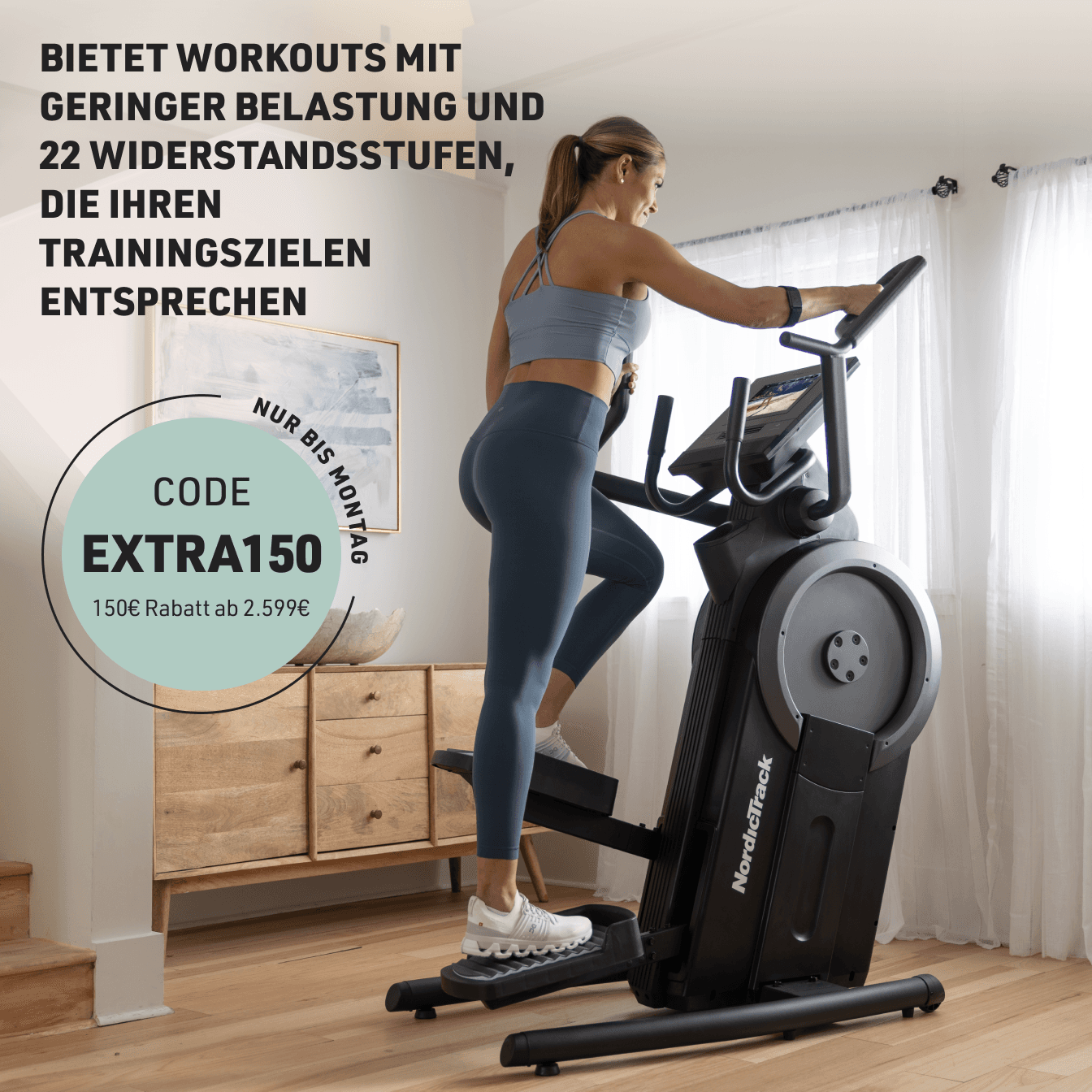 Erreichen Sie Ihre Ziele mit Treppenstufen-Workouts mit geringer Belastung. Bauen Sie die untere Körperkraft mit 22 Widerstandsstufen für eine optimale Gesäß- und Quad-Aktivierung auf. In Verbindung mit iFIT können Sie auf unserem 10-Zoll-Touchscreen atemberaubende Workouts auf der ganzen Welt erleben.