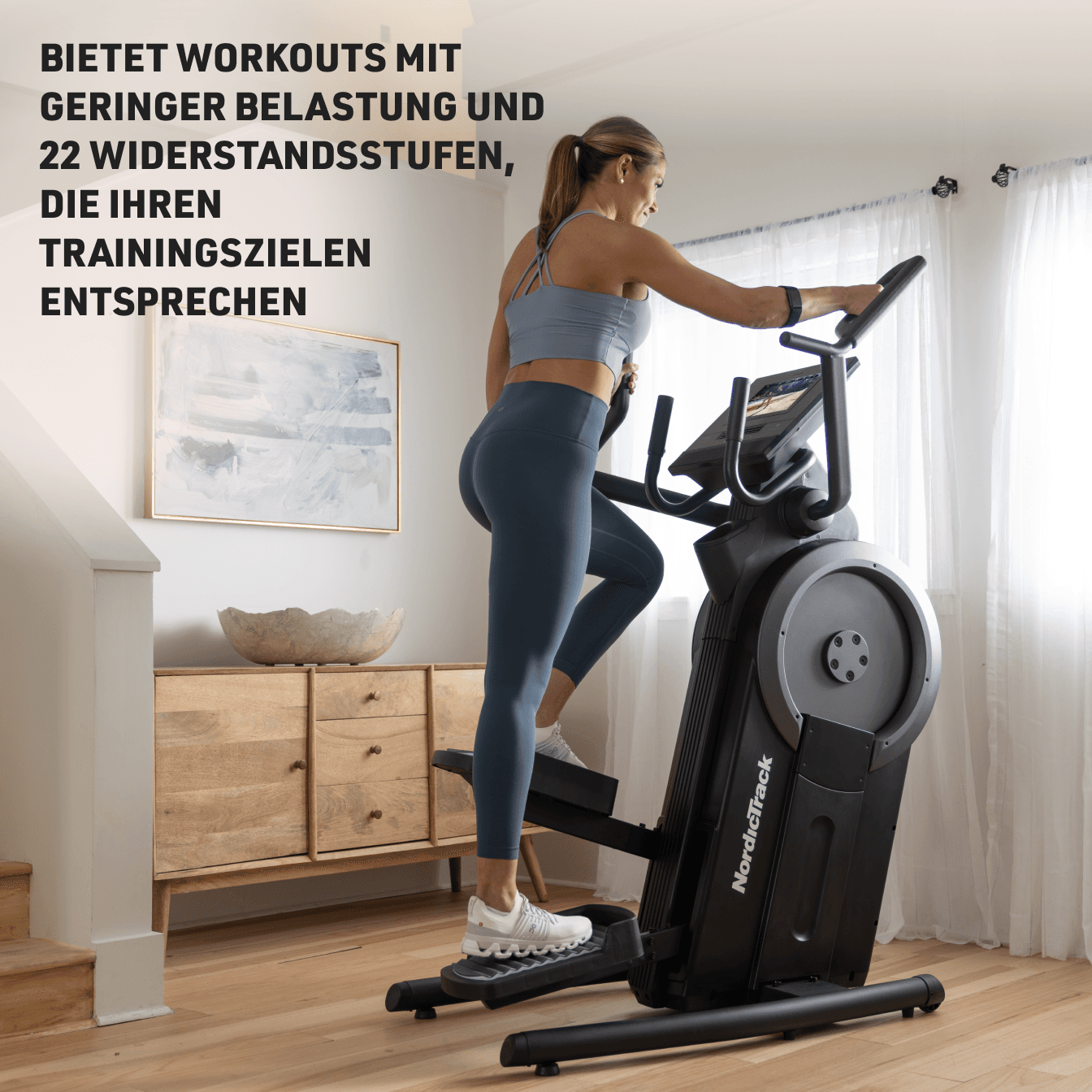 Erreichen Sie Ihre Ziele mit Treppenstufen-Workouts mit geringer Belastung. Bauen Sie die untere Körperkraft mit 22 Widerstandsstufen für eine optimale Gesäß- und Quad-Aktivierung auf. In Verbindung mit iFIT können Sie auf unserem 10-Zoll-Touchscreen atemberaubende Workouts auf der ganzen Welt erleben.