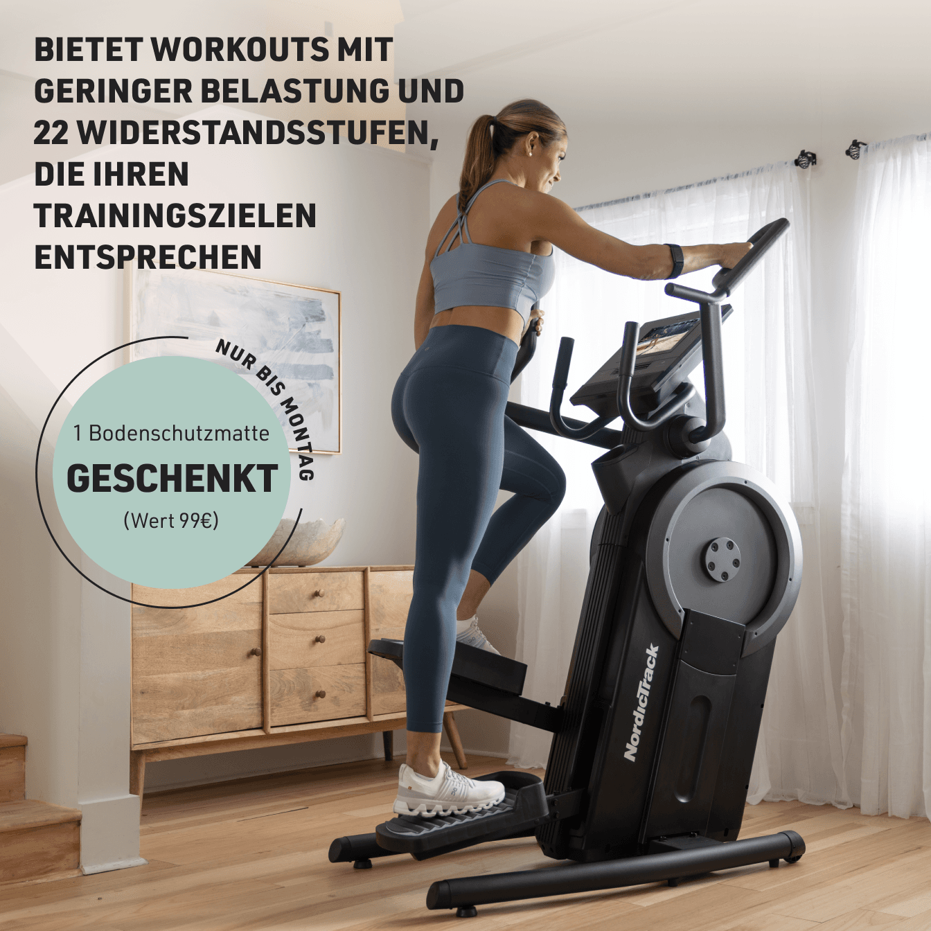Erreichen Sie Ihre Ziele mit Treppenstufen-Workouts mit geringer Belastung. Bauen Sie die untere Körperkraft mit 22 Widerstandsstufen für eine optimale Gesäß- und Quad-Aktivierung auf. In Verbindung mit iFIT können Sie auf unserem 10-Zoll-Touchscreen atemberaubende Workouts auf der ganzen Welt erleben.