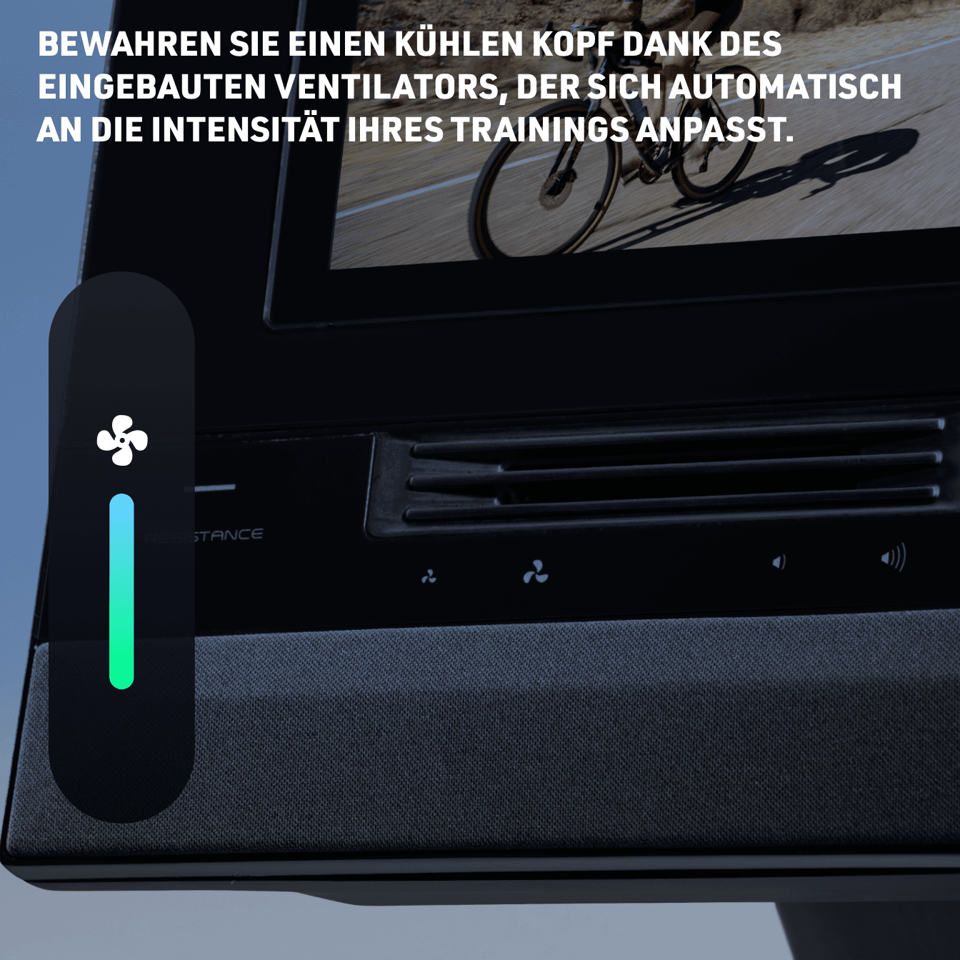 Der AutoBreeze™ - Ventilator passt sich automatisch an die Intensität Ihres Trainings an, um Sie kühl zu halten.