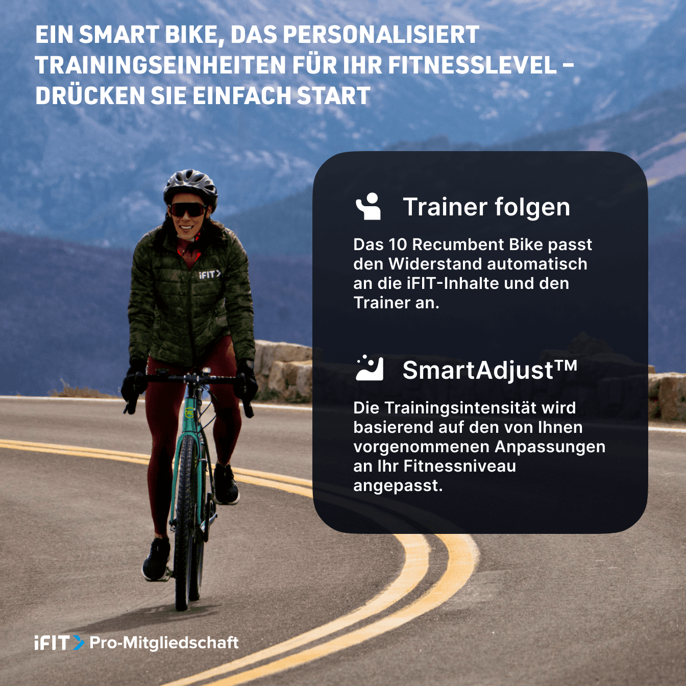 - iFIT Mitgliedschaft ist erforderlich, um auf alle Inhalte und Funktionen der Ausrüstung zugreifen zu können. Die 1-Jahr-Mitgliedschaft verlängert sich automatisch jährlich zum Preis von 396€. Die 2-Jahre- und die 3-Jahre-Mitgliedschaten verlängern sich monatlich zum Preis von 39€. Jederzeit kündbar. Die Monatmitgliedschaft verlängert sich automatisch, wenn sie nicht gekündigt wird.