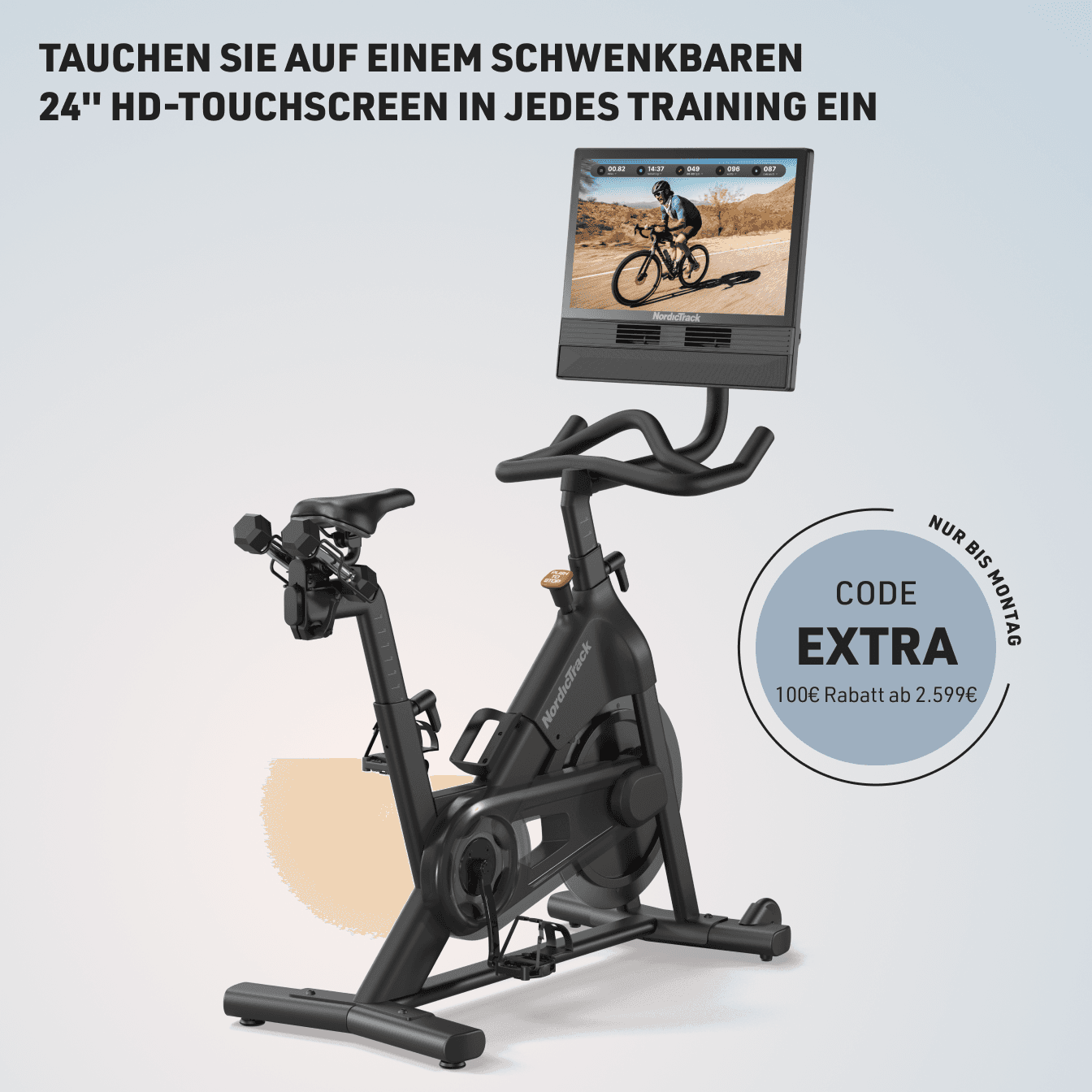 Ein Studio-Bike, das ein erstklassiges Radfahrerlebnis bietet. Die große Bandbreite an Widerstand ermöglicht Erholungsfahrten oder muskelaufbauende Cardio-Workouts, und der große Bildschirm lässt Sie in von Trainern geführte iFIT-Workouts eintauchen.