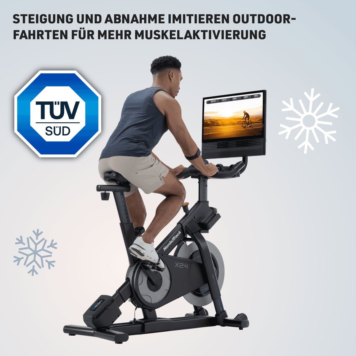 Das X24 Smart Bike passt sich dir an. Drücken Sie einfach Start und iFIT erledigt den Rest.¹