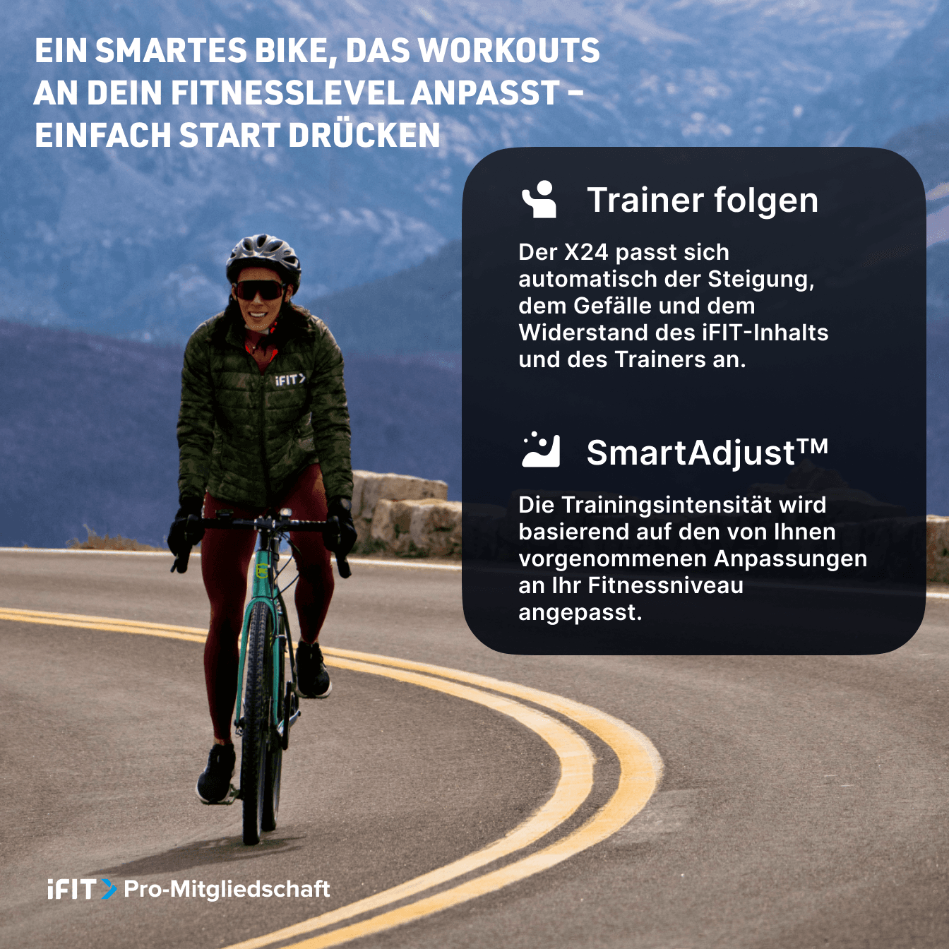 - iFIT Mitgliedschaft ist erforderlich, um auf alle Inhalte und Funktionen der Ausrüstung zugreifen zu können. Die 1-Jahr-Mitgliedschaft verlängert sich automatisch jährlich zum Preis von 396€. Die 2-Jahre- und die 3-Jahre-Mitgliedschaten verlängern sich monatlich zum Preis von 39€. Jederzeit kündbar. Die Monatmitgliedschaft verlängert sich automatisch, wenn sie nicht gekündigt wird.