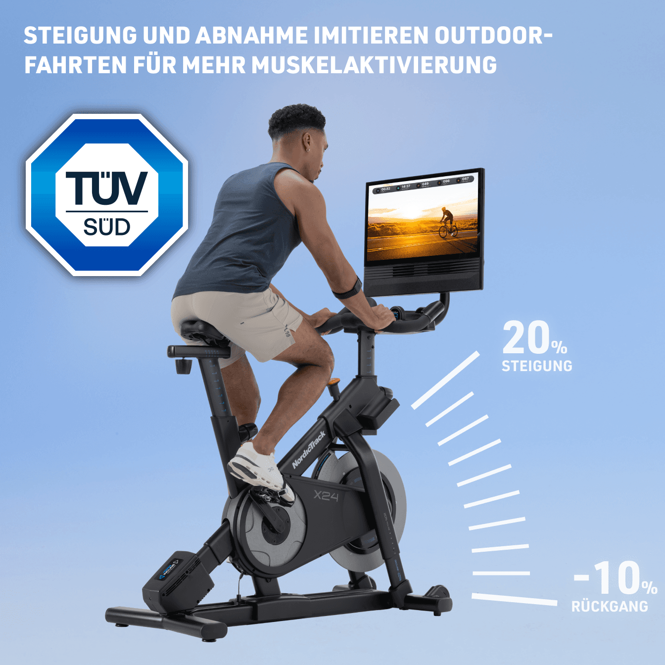 20% Steigung bis -10% Neigung für mehr Trainingsvielfalt