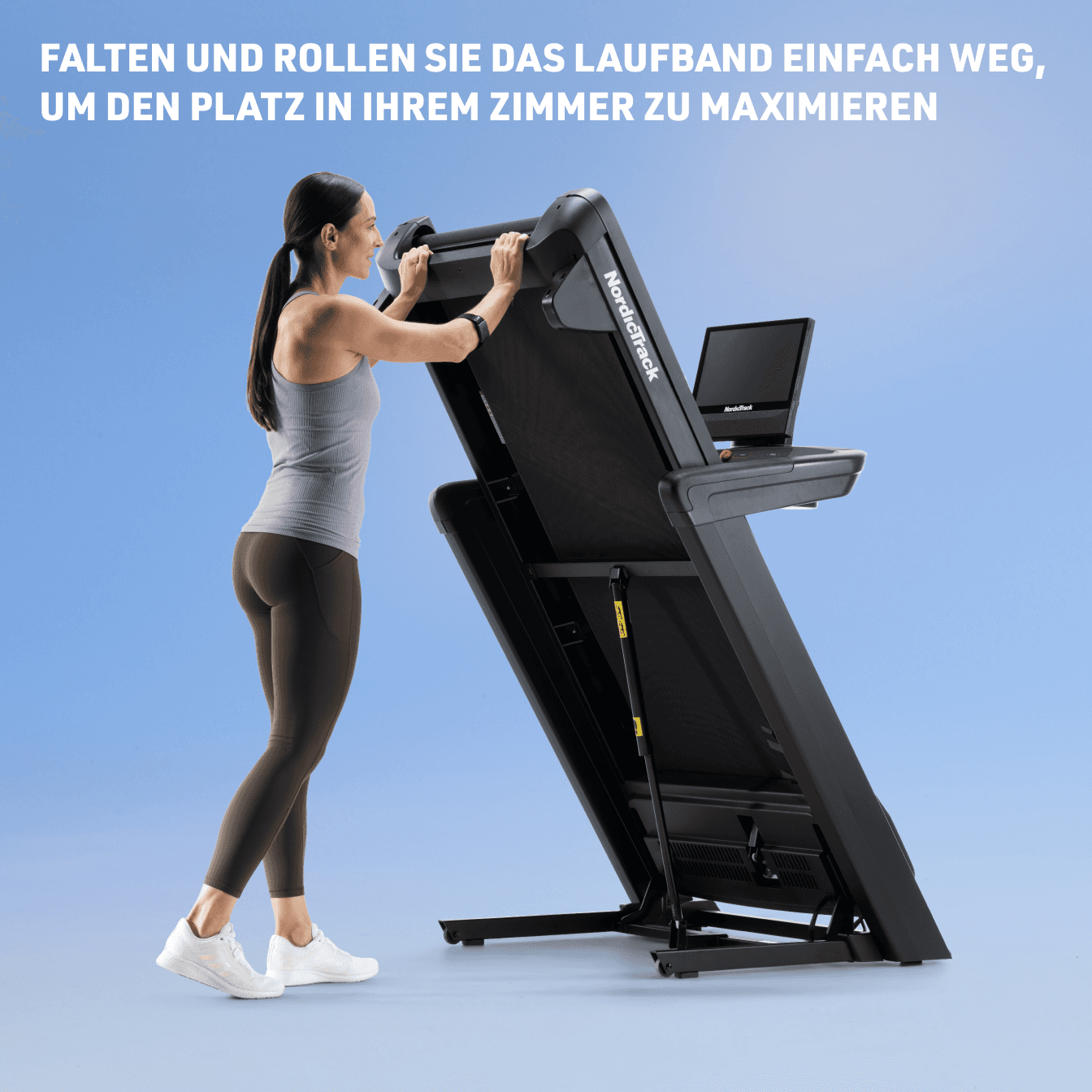 Leichtes Zusammenklappen und Wegrollen des Laufbands mit SpaceSaver™ -Design