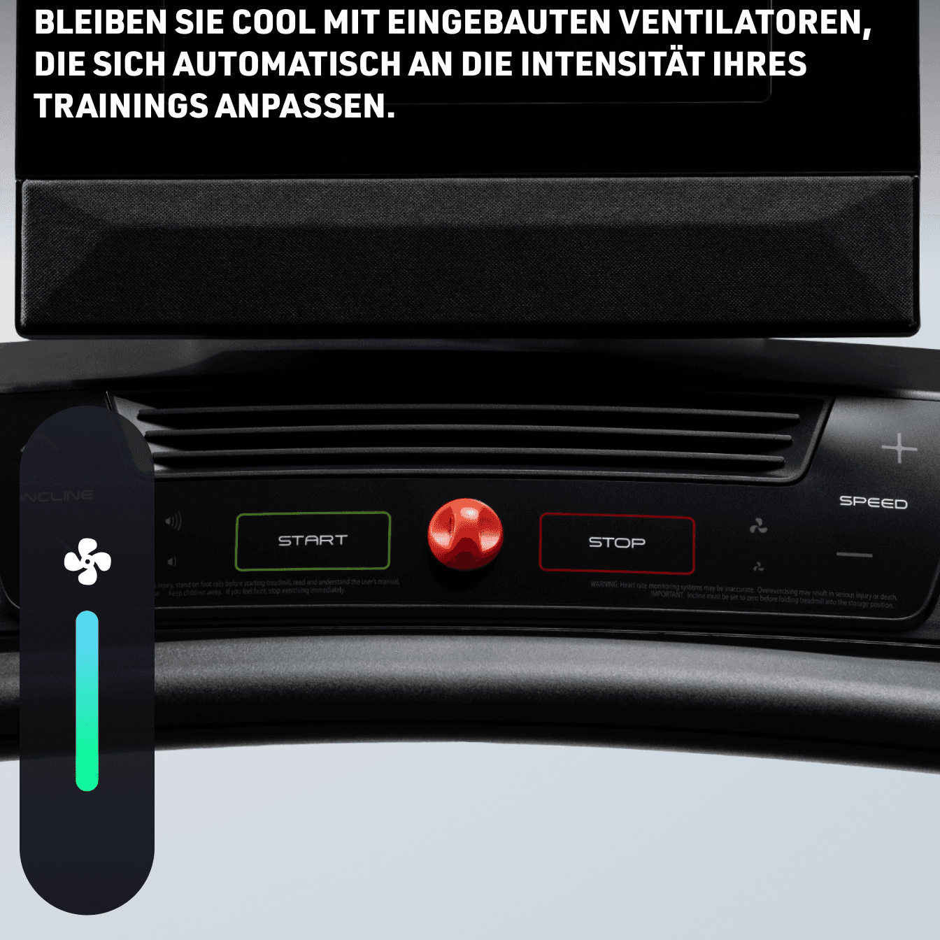 DER AUTOBREEZE™ -VENTILATOR PASST SICH AUTOMATISCH AN DIE INTENSITÄT IHRES TRAININGS AN, UM SIE KÜHL ZU HALTEN.
