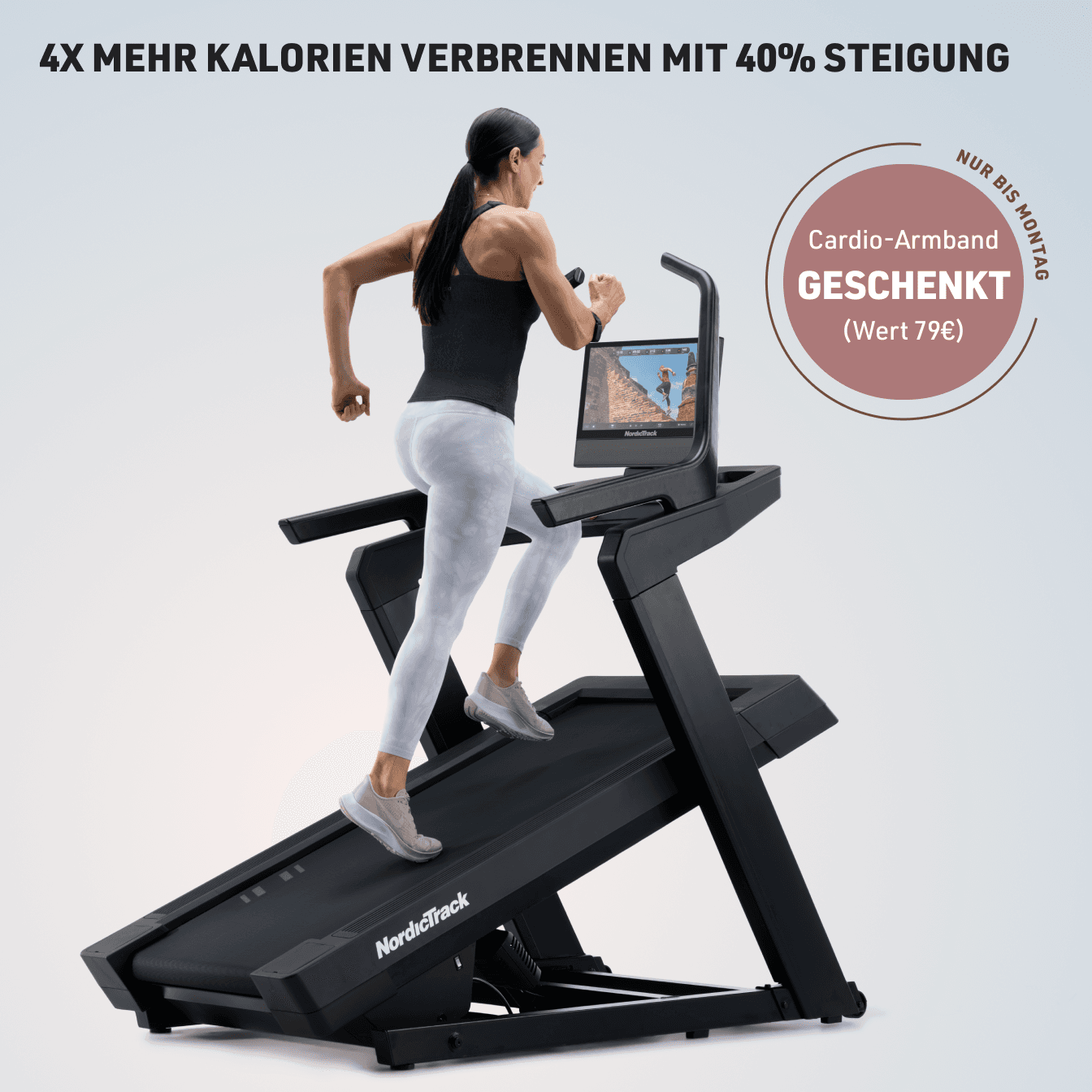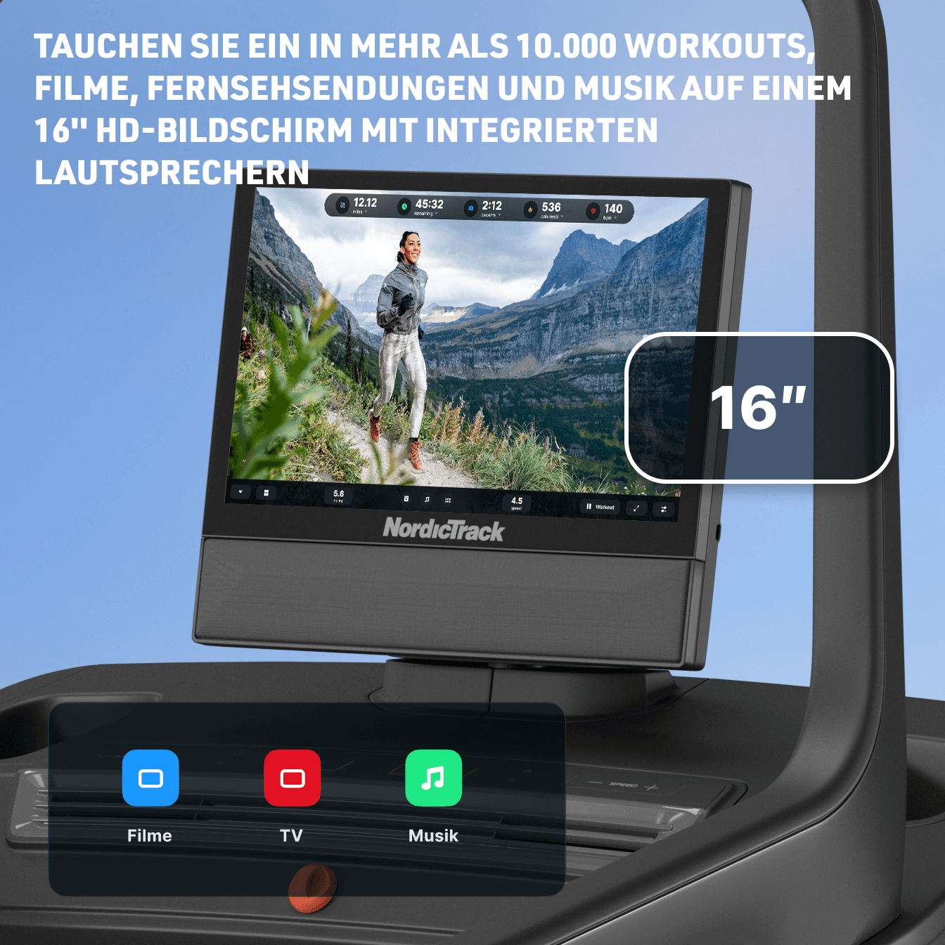 Cross-Training, um Kraft und Ausdauer mit unserem vielseitigsten Laufband aufzubauen. In Kombination mit iFIT können Sie auf unserem 16'' Touchscreen in atemberaubende Trainingseinheiten auf der ganzen Welt eintauchen.