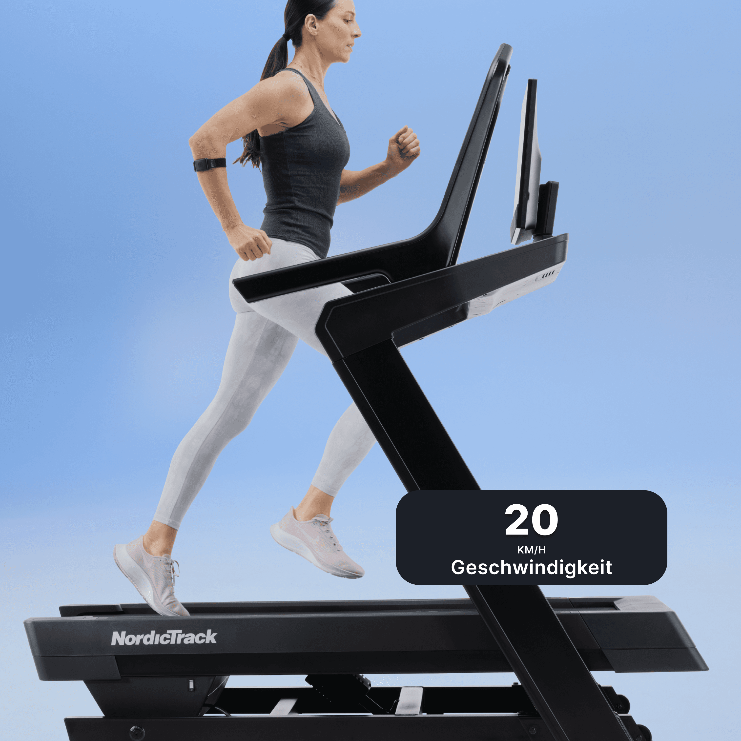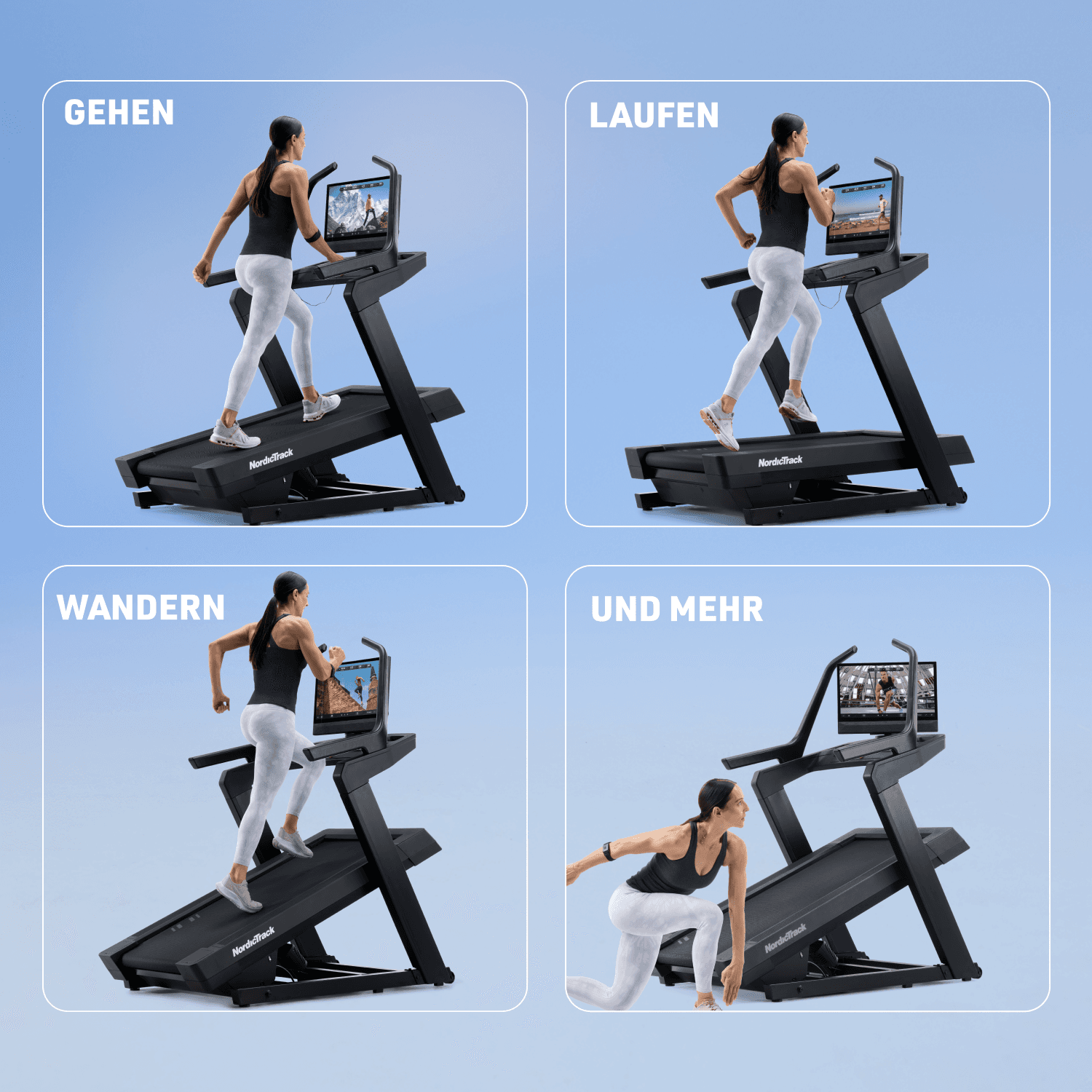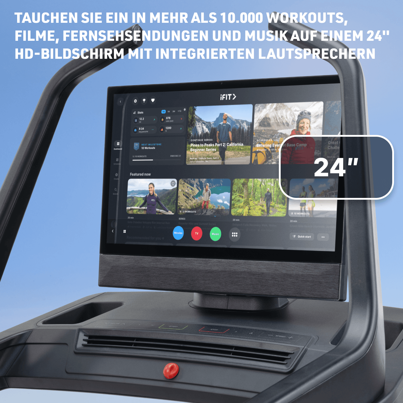 Cross-Training, um Kraft und Ausdauer mit unserem vielseitigsten Laufband aufzubauen. In Kombination mit iFIT können Sie auf unserem 24'' Touchscreen in atemberaubende Trainingseinheiten auf der ganzen Welt eintauchen.