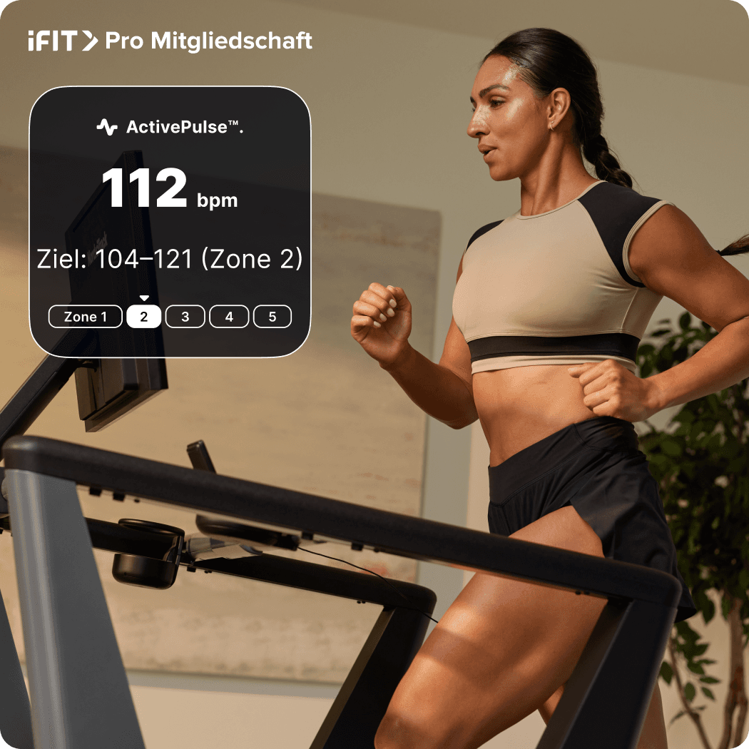 2. iFIT-Abonnement und kompatible Herzfrequenz-Überwachung erforderlich (separat erhältlich). Nur mit Laufbändern verfügbar
