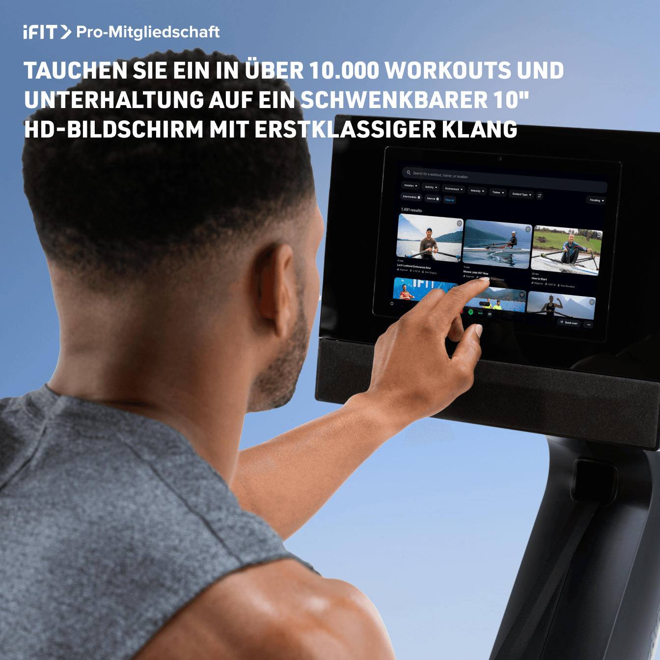 Ein sanftes und starkes Ganzkörpertraining mit allem Widerstand, den Sie für die gewünschte Intensität benötigen. In Kombination mit iFIT können Sie auf einem 10'' Touchscreen in Trainingseinheiten auf der ganzen Welt eintauchen.
