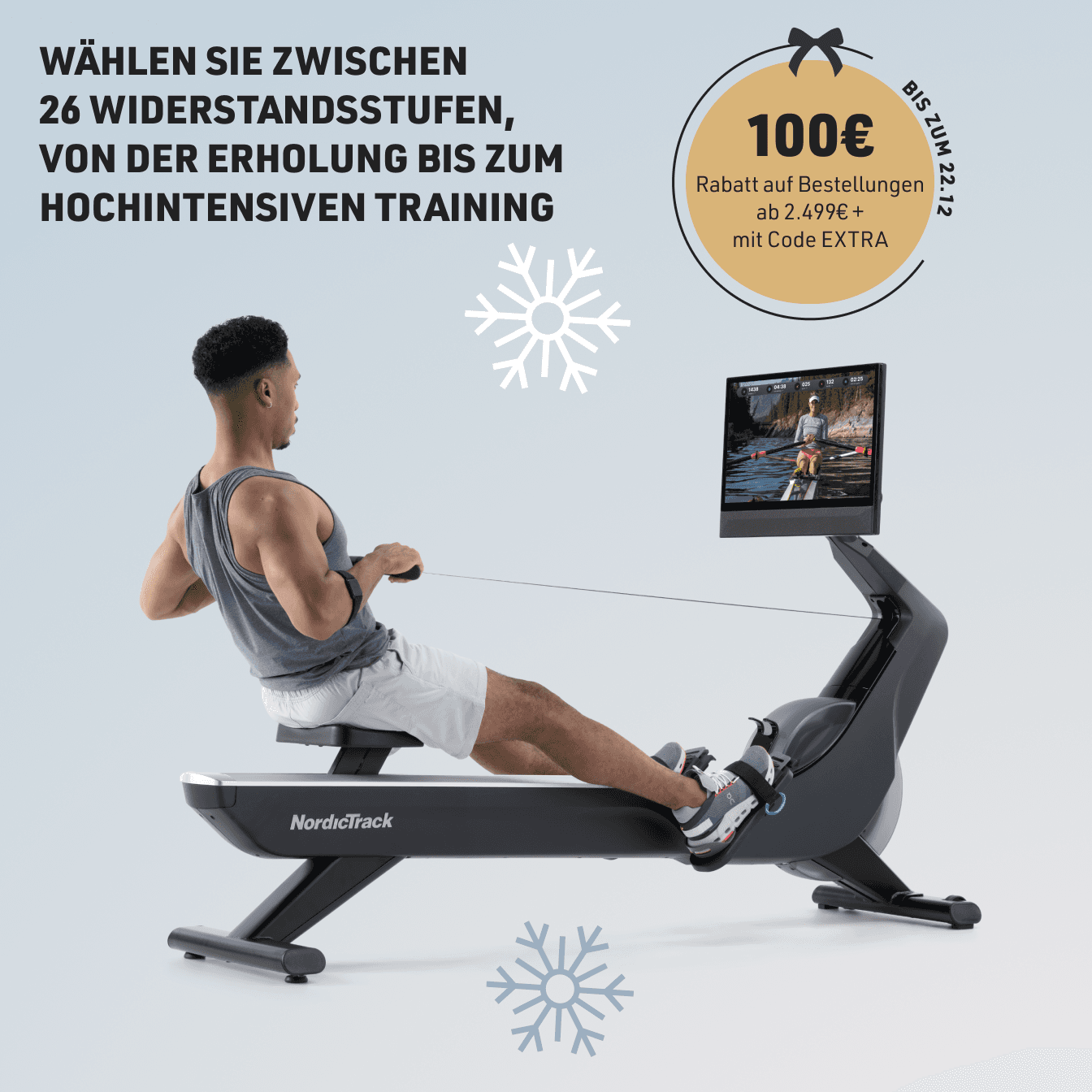 Ein sanftes und starkes Ganzkörpertraining mit allem Widerstand, den Sie für die gewünschte Intensität benötigen. In Kombination mit iFIT können Sie auf einem 24'' Touchscreen in Trainingseinheiten auf der ganzen Welt eintauchen.