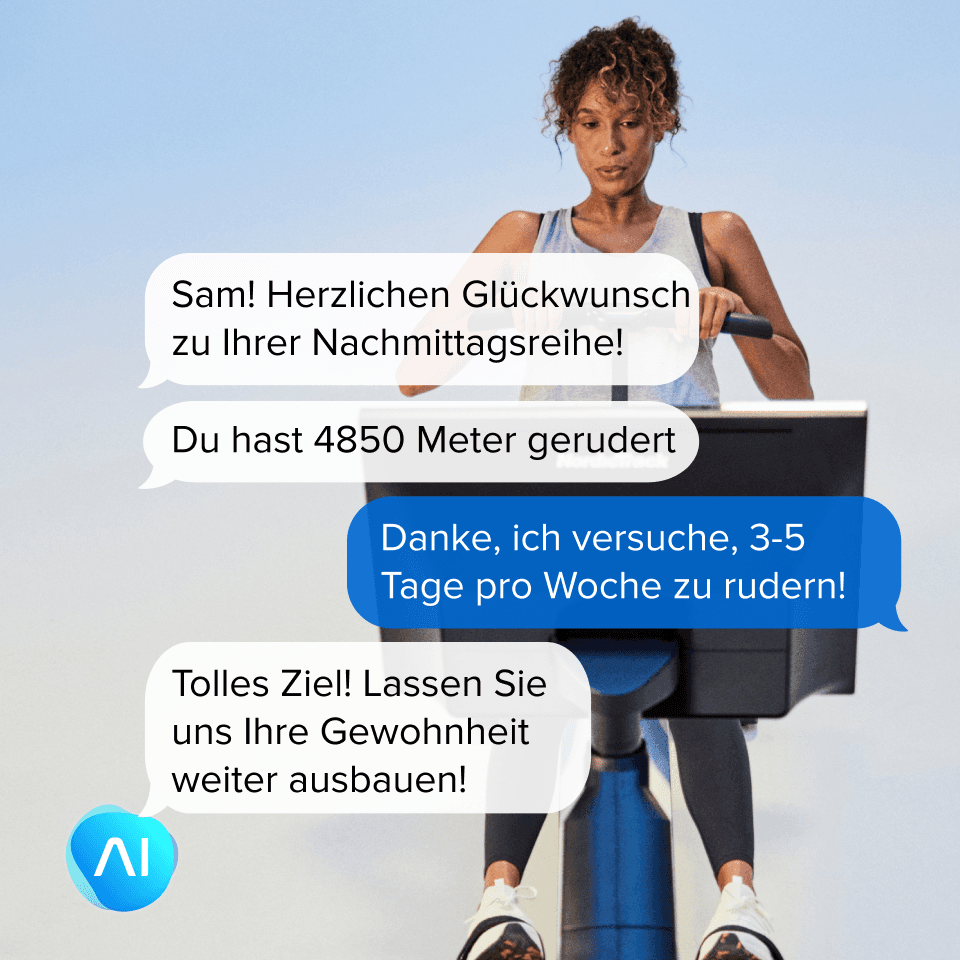 iFIT AI Coach ist ein persönlicher Fitness-Assistent, der Ihre Trainingspläne erstellt und Sie über Ihr Telefon auf dem Laufenden hält.³