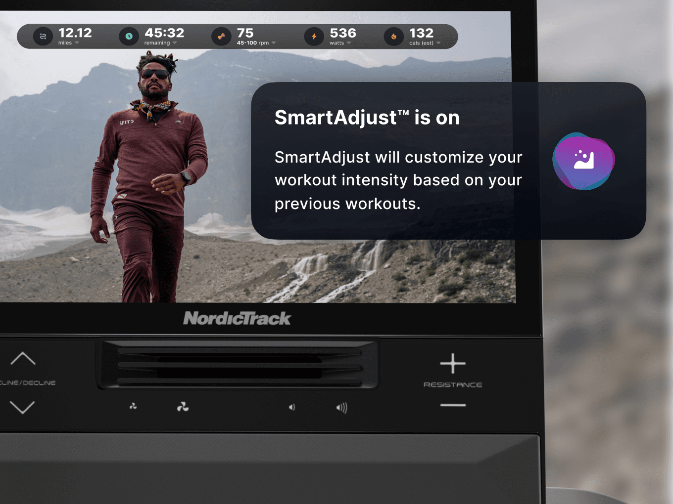 SmartAdjust™ intelligently adjusts incline and resistance to your fitness level based on adjustments you make in your workouts.²