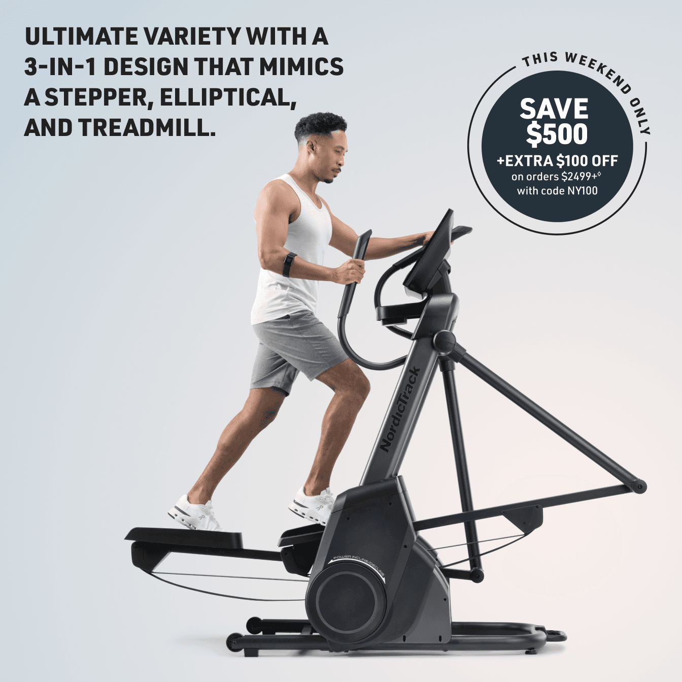 ◊Extra $100 off orders $2,499+ offer (“Offer”) available December 26, 2025 through December 29, 2025 until 11:59PM MST for U.S. residents, 18+. Discount only applies to the subtotal of order at Home and Exercise Equipment by NordicTrack - Treadmills, Ellipticals, and More and will not apply to taxes or shipping or other charges. Offer is not transferable, substitutable, not redeemable for cash or account credit, has no cash value, and will not be applied retroactively. Void where prohibited. Must enter NY100 promo code at checkout to obtain discount. Limit one per customer. Offer excludes Ultra Series products. NordicTrack reserves the right to end, revise, modify, or extend this Offer or its terms at any time without notice. NordicTrack is not responsible for any Offer errors, including tech errors.
