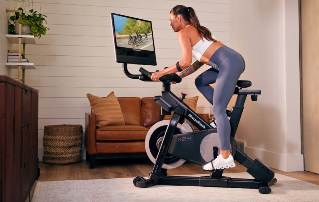Bicis: Entrena principalmente sentado en subidas para ser más económico³. Incorpora intervalos de 30–60 segundos de pie para desafiar los cuádriceps y elevar la frecuencia cardíaca³. La X24 Bike se ajusta automáticamente con la función Follow Trainer de iFIT, sincronizando las pendientes con el terreno real.