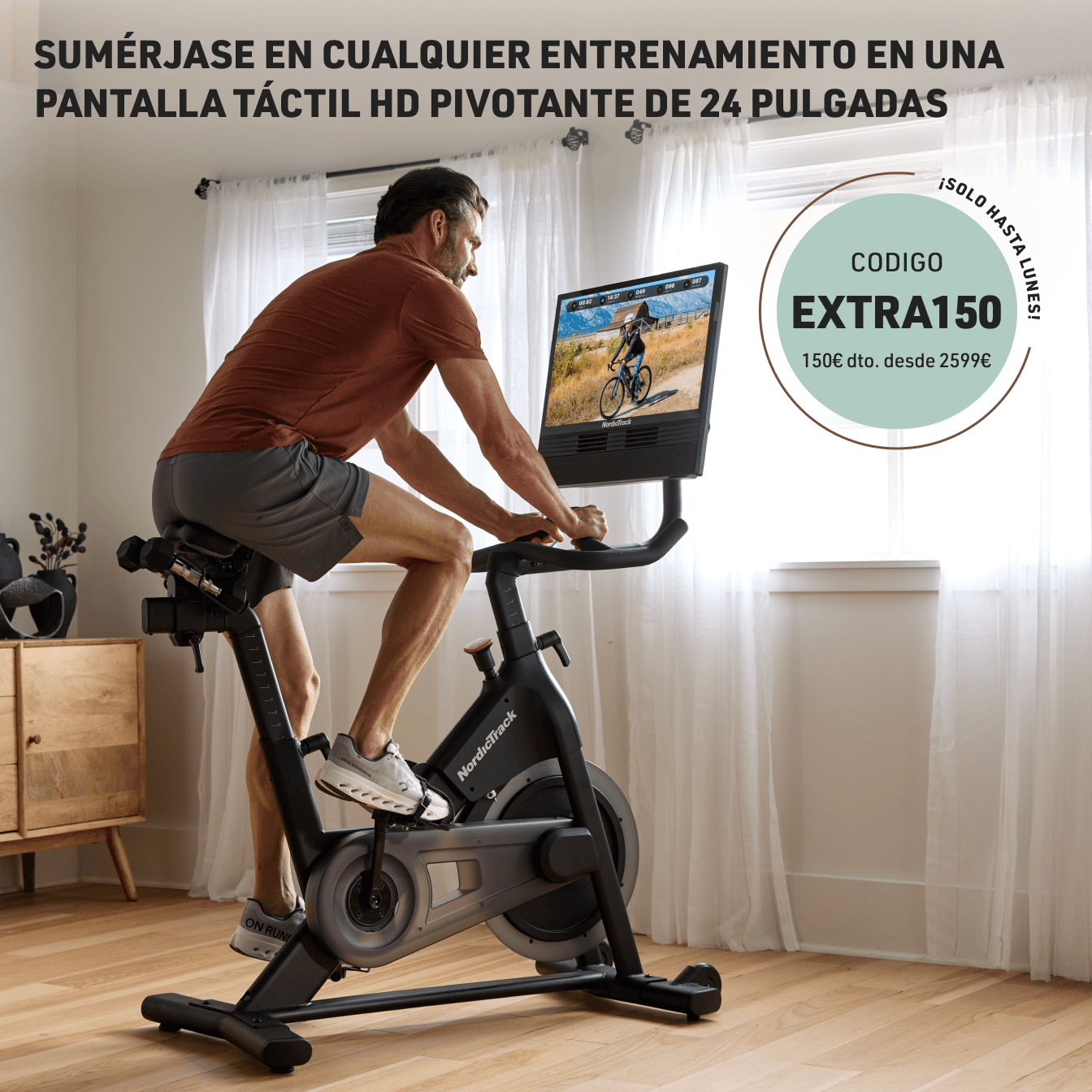 Una bicicleta de estudio que ofrece una experiencia de ciclismo de primera clase. La amplia variedad de resistencias permite tanto paseos de recuperación como entrenamientos cardiovasculares para fortalecer músculos, y la gran pantalla te sumerge en los entrenamientos dirigidos por entrenadores de iFIT.