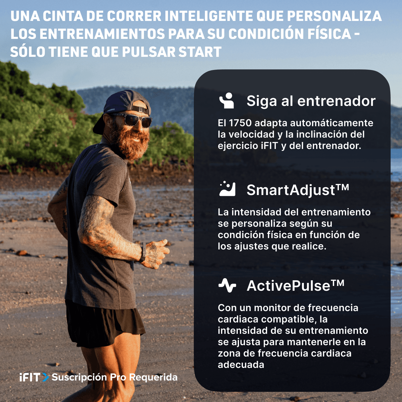- Se requiere suscripción a iFIT y monitor de frecuencia cardiaca compatible (se venden por separado). Disponible sólo para cintas de correr.