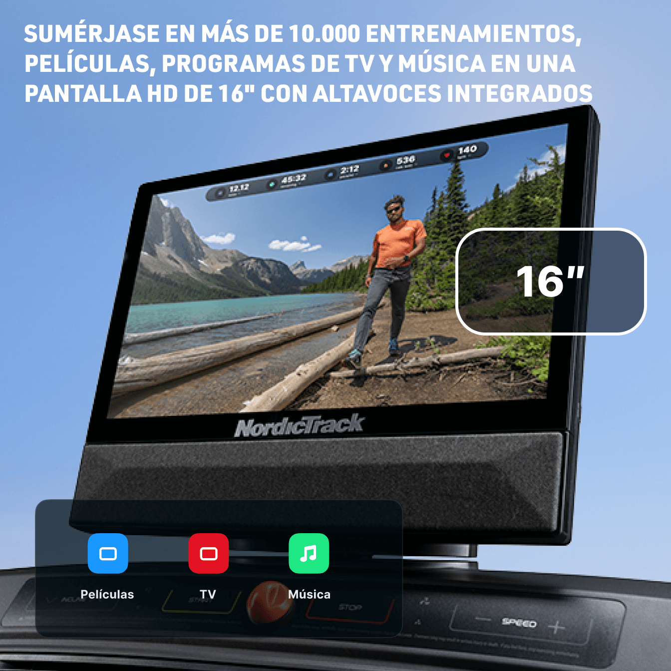 Una cinta perfecta para corredores principiantes e intermedios que buscan mejorar su resistencia. Siga a los entrenadores iFIT en ejercicios dentro o fuera de la cinta en una pantalla táctil pivotante de 16".
